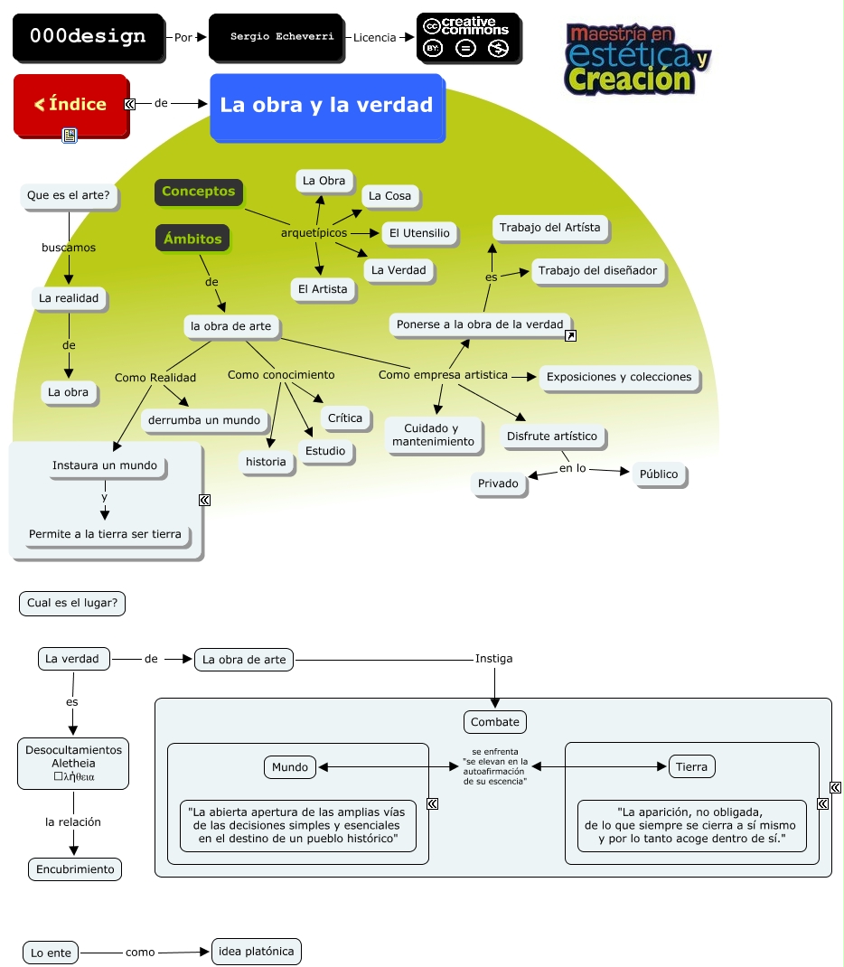 Este Cmap, tiene información relacionada con: La obra y la verdad, La obra de arte Instiga Combate, la obra de arte Como Realidad derrumba un mundo, Conceptos arquetípicos La Verdad, Disfrute artístico en lo Privado, Conceptos arquetípicos El Artista, Conceptos arquetípicos El Utensilio, la obra de arte Como conocimiento historia, la obra de arte Como empresa artistica Exposiciones y colecciones, La verdad de La obra de arte, Ponerse a la obra de la verdad es Trabajo del Artísta, la obra de arte Como empresa artistica Ponerse a la obra de la verdad, Conceptos arquetípicos La Cosa, ???? de La obra y la verdad, la obra de arte Como conocimiento Estudio, la obra de arte Como Realidad Instaura un mundo, la obra de arte Como conocimiento Crítica, 000design Por Sergio Echeverri, Que es el arte? buscamos La realidad, Lo ente como idea platónica, Disfrute artístico en lo Público