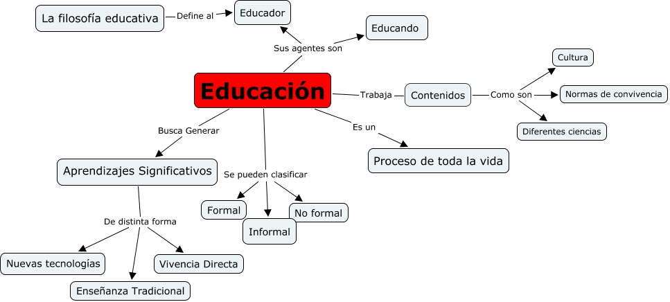 Este Cmap, tiene información relacionada con: Elena Rebufello, Educación Es un Proceso de toda la vida, Educación Trabaja Contenidos, Educación Sus agentes son Educando, Aprendizajes Significativos De distinta forma Vivencia Directa, Educación Se pueden clasificar No formal, Educación Se pueden clasificar Informal, La filosofía educativa Define al Educador, Educación Sus agentes son Educador, Educación Busca Generar Aprendizajes Significativos, Aprendizajes Significativos De distinta forma Enseñanza Tradicional, Contenidos Como son Cultura, Aprendizajes Significativos De distinta forma Nuevas tecnologías, Contenidos Como son Diferentes ciencias, Contenidos Como son Normas de convivencia, Educación Se pueden clasificar Formal