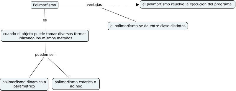 Este Cmap, tiene información relacionada con: polimorfismo y sobrecarga, cuando el objeto puede tomar diversas formas utilizando los mismos metodos pueden ser polimorfismo dinamico o parametrico, Polimorfismo ventajas el polimorfismo se da entre clase distintas, Polimorfismo es cuando el objeto puede tomar diversas formas utilizando los mismos metodos, Polimorfismo ventajas el polimorfismo reuelve la ejecucion del programa, cuando el objeto puede tomar diversas formas utilizando los mismos metodos pueden ser polimorfismo estatico o ad hoc