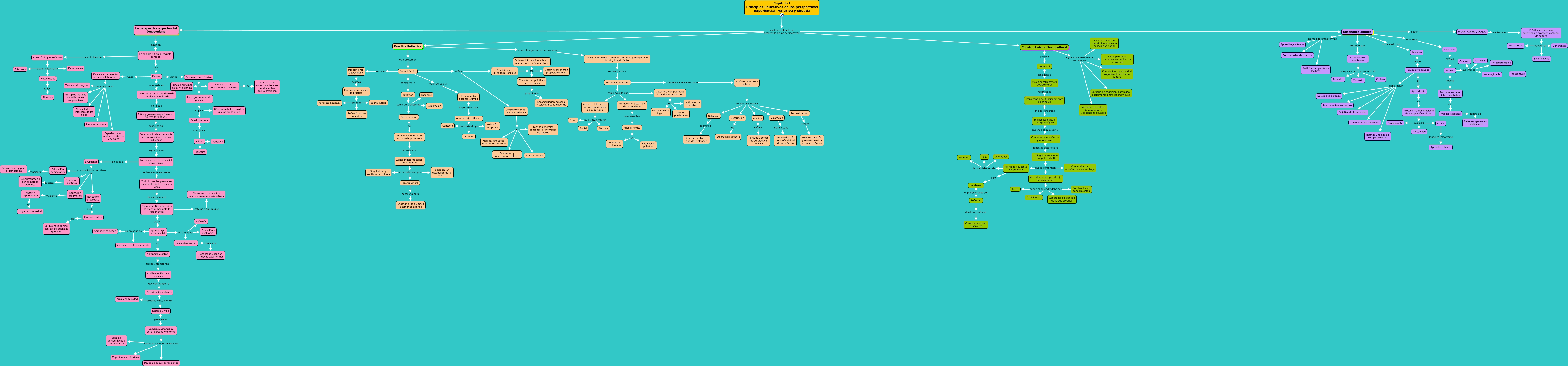 Este Cmap, tiene información relacionada con: capitulo I, Ambientes fisicos y sociales que contribuyen a Experiencias valiosas, Situado no implica Particular, En el siglo XX en la escuela europea para Dewey, Jean Lave explica Situado, Conceptualización conlleva a Reconceptualización y nuevas experiencias, Aprendizaje experiencial en 3 etapas Reflexión, Atiende el desarrollo de las capacidades de la persona en sus tres esferas Social, Aprendizaje reflexivo caracterizado por Reflexión recíproca, La mejor manera de pensar implica Estado de duda, Intrapsocológico e interpsicológico entiende al aula como Contexto de enseñanza y aprendizaje, Cambios sustanciales en la persona y entorno donde el alumno desarrollará Capacidades reflexivas, La perspectiva experiencial Deweyniana surge en En el siglo XX en la escuela europea, Reflexión como un proceso de Estructuración, Profesor práctico y reflexivo su práctica implica Reconstrucción, Escuela experimental o escuela laboratorio se sustenta en Principios morales de actividades cooperativas, Enseñanza situada según Brown, Collins y Duguid, Zonas indeterminadas de la práctica se caracterizan por Incertidumbre, Aprendizaje experiencial en 3 etapas Discusión y evaluación, Actividad educativa del profesor la cual debe ser de Guía, Aprendizaje experiencial su enfoque es Aprender haciendo
