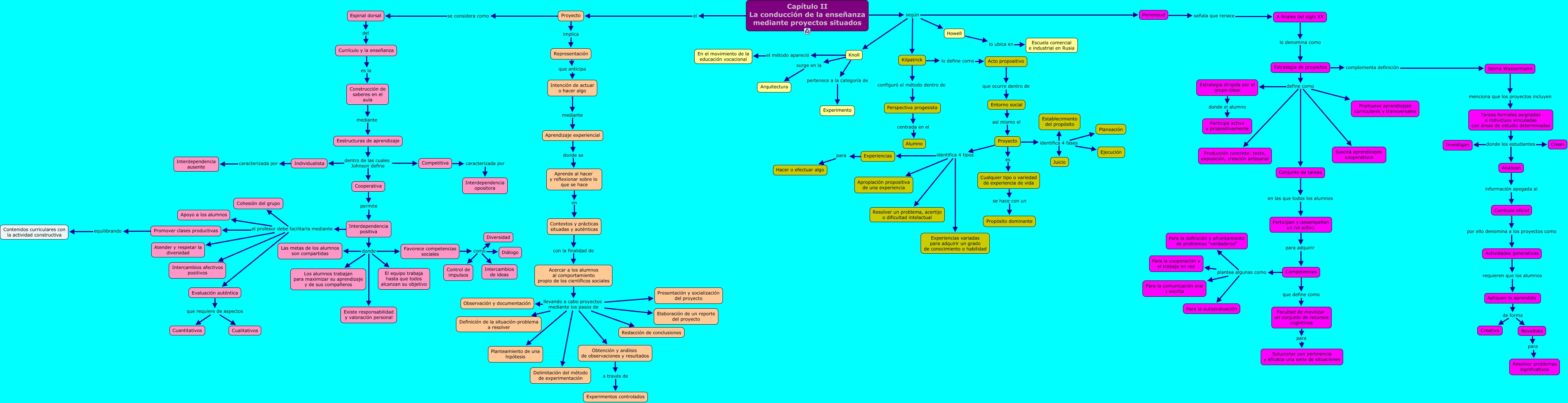 Este Cmap, tiene información relacionada con: capitulo II, Kilpatrick configuró el método dentro de Perspectiva progesista, Selma Wassermann menciona que los proyectos incluyen Tareas formales asignadas a individuos vinculadas con áreas de estudio determinadas, Eestructuras de aprendizaje dentro de las cuales Johnson define Cooperativa, Interdependencia positiva el profesor debe facilitarla mediante Intercambios afectivos positivos, Evaluación auténtica que requiere de aspectos Cualitativos, Acercar a los alumnos al comportamiento propio de los científicos sociales llevando a cabo proyectos mediante los pasos de Planteamiento de una hipótesis, Proyecto identifica 4 fases Juicio, Competencias plantea algunas como Para la cooperación y el trabajo en red, Acercar a los alumnos al comportamiento propio de los científicos sociales llevando a cabo proyectos mediante los pasos de Presentación y socialización del proyecto, Novedosa para Resolver problemas significativos, Acercar a los alumnos al comportamiento propio de los científicos sociales llevando a cabo proyectos mediante los pasos de Observación y documentación, Tareas formales asignadas a individuos vinculadas con áreas de estudio determinadas donde los estudiantes Crean, Capítulo II La conducción de la enseñanza mediante proyectos situados según Knoll, Participan y desempeñan un rol activo para adquirir Competencias, Favorece competencias sociales como Diálogo, Proyecto identifica 4 tipos Experiencias, Tareas formales asignadas a individuos vinculadas con áreas de estudio determinadas donde los estudiantes Analizan, Currículo y la enseñanza es la Construcción de saberes en el aula, Estrategia de proyectos define como Suscita aprendizajes cooperativos, Knoll pertenece a la categoría de Experimento
