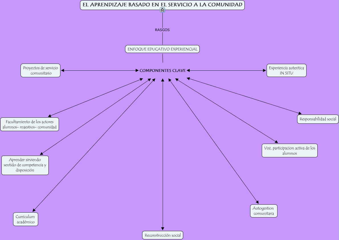 Este Cmap, tiene información relacionada con: YATES YOUNISS, ENFOQUE EDUCATIVO EXPERIENCIAL COMPONENTES CLAVE Voz, participacion activa de los alumnos, ENFOQUE EDUCATIVO EXPERIENCIAL COMPONENTES CLAVE Responsabilidad social, ENFOQUE EDUCATIVO EXPERIENCIAL COMPONENTES CLAVE Reconstrucción social, ENFOQUE EDUCATIVO EXPERIENCIAL COMPONENTES CLAVE Curriculum académico, ENFOQUE EDUCATIVO EXPERIENCIAL COMPONENTES CLAVE Facultamiento de los actores alumnos- maestros- comunidad, ENFOQUE EDUCATIVO EXPERIENCIAL COMPONENTES CLAVE Experiencia autentica IN SITU, ENFOQUE EDUCATIVO EXPERIENCIAL COMPONENTES CLAVE Proyectos de servicio comunitario, EL APRENDIZAJE BASADO EN EL SERVICIO A LA COMUNIDAD RASGOS ENFOQUE EDUCATIVO EXPERIENCIAL, ENFOQUE EDUCATIVO EXPERIENCIAL COMPONENTES CLAVE Autogestion comunitaria, ENFOQUE EDUCATIVO EXPERIENCIAL COMPONENTES CLAVE Aprender sirviendo sentido de competencia y disposición
