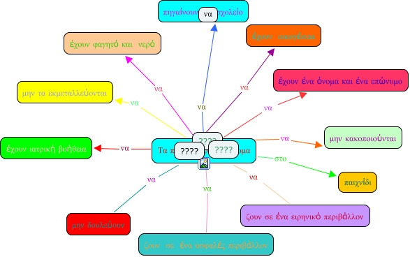 Αυτός ο εννοιολογικός χάρτης, που δημιουργήθηκε με το IHMC Cmap Tools, περιέχει πλήροφορίες που σχετίζονται με: δικαιώματα, Τα παιδιά έχουν δικαίωμα να μην τα εκμεταλλεύονται, Τα παιδιά έχουν δικαίωμα να ζουν σε ένα ασφαλές περιβάλλον, Τα παιδιά έχουν δικαίωμα να έχουν ιατρική βοήθεια, Τα παιδιά έχουν δικαίωμα να έχουν ένα όνομα και ένα επώνυμο, Τα παιδιά έχουν δικαίωμα να να, Τα παιδιά έχουν δικαίωμα να έχουν φαγητό και νερό, ???? να μην κακοποιούνται, Τα παιδιά έχουν δικαίωμα στο παιχνίδι, ???? να έχουν οικογένεια, Τα παιδιά έχουν δικαίωμα να μην δουλεύουν, Τα παιδιά έχουν δικαίωμα να ζουν σε ένα ειρηνικό περιβάλλον