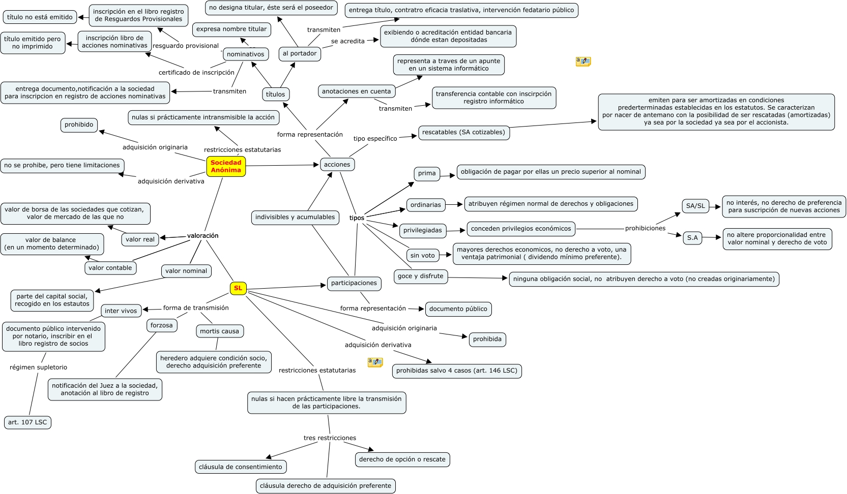 Este Cmap, tiene información relacionada con: Escenario 7, mercantil II, sin voto es mayores derechos economicos, no derecho a voto, una ventaja patrimonial ( dividendo mínimo preferente)., al portador transmiten entrega título, contratro eficacia traslativa, intervención fedatario público, SL valoración valor real, S.A es no altere proporcionalidad entre valor nominal y derecho de voto, nominativos certificado de inscripción inscripción libro de acciones nominativas, ordinarias es atribuyen régimen normal de derechos y obligaciones, Sociedad Anónima valoración valor contable, valor contable es valor de balance (en un momento determinado), SL adquisición originaria prohibida, títulos es al portador, nulas si hacen prácticamente libre la transmisión de las participaciones. tres restricciones cláusula de consentimiento, anotaciones en cuenta es representa a traves de un apunte en un sistema informático, nominativos es expresa nombre titular, SL forma de transmisión forzosa, acciones tipos ordinarias, acciones tipos goce y disfrute, mortis causa es heredero adquiere condición socio, derecho adquisición preferente, SL forma de transmisión inter vivos, participaciones tipos prima, indivisibles y acumulables son acciones