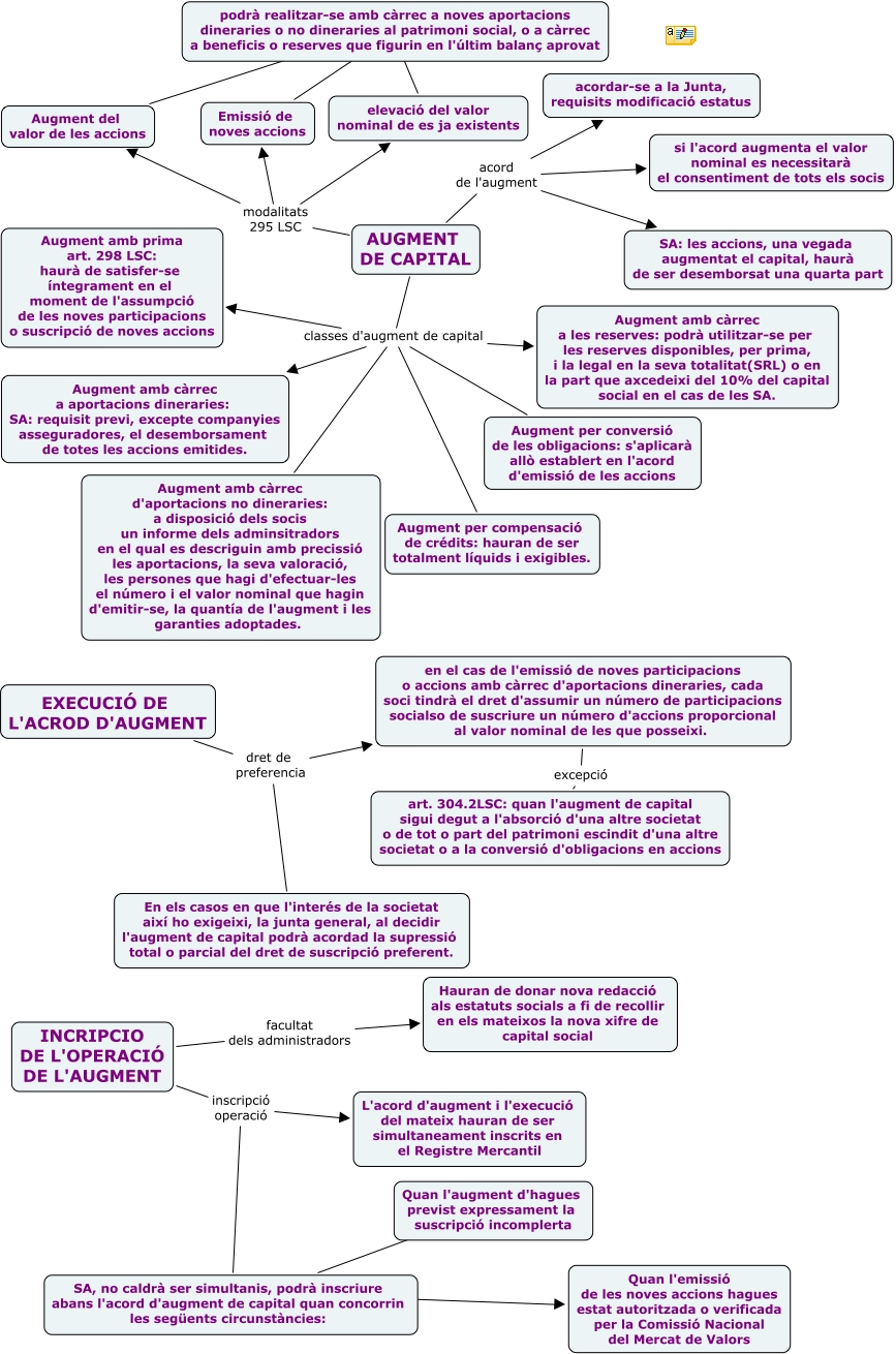 Este Cmap, tiene información relacionada con: Blue Transparance 8, INCRIPCIO DE L'OPERACIÓ DE L'AUGMENT inscripció operació SA, no caldrà ser simultanis, podrà inscriure abans l'acord d'augment de capital quan concorrin les següents circunstàncies:, elevació del valor nominal de es ja existents ???? podrà realitzar-se amb càrrec a noves aportacions dineraries o no dineraries al patrimoni social, o a càrrec a beneficis o reserves que figurin en l'últim balanç aprovat, AUGMENT DE CAPITAL classes d'augment de capital Augment amb càrrec a aportacions dineraries: SA: requisit previ, excepte companyies asseguradores, el desemborsament de totes les accions emitides., AUGMENT DE CAPITAL classes d'augment de capital Augment amb prima art. 298 LSC: haurà de satisfer-se íntegrament en el moment de l'assumpció de les noves participacions o suscripció de noves accions, INCRIPCIO DE L'OPERACIÓ DE L'AUGMENT inscripció operació L'acord d'augment i l'execució del mateix hauran de ser simultaneament inscrits en el Registre Mercantil, Augment del valor de les accions ???? podrà realitzar-se amb càrrec a noves aportacions dineraries o no dineraries al patrimoni social, o a càrrec a beneficis o reserves que figurin en l'últim balanç aprovat, AUGMENT DE CAPITAL classes d'augment de capital Augment per conversió de les obligacions: s'aplicarà allò establert en l'acord d'emissió de les accions, Emissió de noves accions ???? podrà realitzar-se amb càrrec a noves aportacions dineraries o no dineraries al patrimoni social, o a càrrec a beneficis o reserves que figurin en l'últim balanç aprovat, en el cas de l'emissió de noves participacions o accions amb càrrec d'aportacions dineraries, cada soci tindrà el dret d'assumir un número de participacions socialso de suscriure un número d'accions proporcional al valor nominal de les que posseixi. excepció art. 304.2LSC: quan l'augment de capital sigui degut a l'absorció d'una altre societat o de tot o part del patrimoni escindit d'una altre societat o a la conversió d'obligacions en accions, AUGMENT DE CAPITAL modalitats 295 LSC elevació del valor nominal de es ja existents, AUGMENT DE CAPITAL acord de l'augment si l'acord augmenta el valor nominal es necessitarà el consentiment de tots els socis, AUGMENT DE CAPITAL modalitats 295 LSC Augment del valor de les accions, AUGMENT DE CAPITAL classes d'augment de capital Augment amb càrrec d'aportacions no dineraries: a disposició dels socis un informe dels adminsitradors en el qual es descriguin amb precissió les aportacions, la seva valoració, les persones que hagi d'efectuar-les el número i el valor nominal que hagin d'emitir-se, la quantía de l'augment i les garanties adoptades., AUGMENT DE CAPITAL acord de l'augment acordar-se a la Junta, requisits modificació estatus, EXECUCIÓ DE L'ACROD D'AUGMENT dret de preferencia En els casos en que l'interés de la societat així ho exigeixi, la junta general, al decidir l'augment de capital podrà acordad la supressió total o parcial del dret de suscripció preferent., SA, no caldrà ser simultanis, podrà inscriure abans l'acord d'augment de capital quan concorrin les següents circunstàncies: ???? Quan l'augment d'hagues previst expressament la suscripció incomplerta, EXECUCIÓ DE L'ACROD D'AUGMENT dret de preferencia en el cas de l'emissió de noves participacions o accions amb càrrec d'aportacions dineraries, cada soci tindrà el dret d'assumir un número de participacions socialso de suscriure un número d'accions proporcional al valor nominal de les que posseixi., AUGMENT DE CAPITAL modalitats 295 LSC Emissió de noves accions, SA, no caldrà ser simultanis, podrà inscriure abans l'acord d'augment de capital quan concorrin les següents circunstàncies: ???? Quan l'emissió de les noves accions hagues estat autoritzada o verificada per la Comissió Nacional del Mercat de Valors, INCRIPCIO DE L'OPERACIÓ DE L'AUGMENT facultat dels administradors Hauran de donar nova redacció als estatuts socials a fi de recollir en els mateixos la nova xifre de capital social