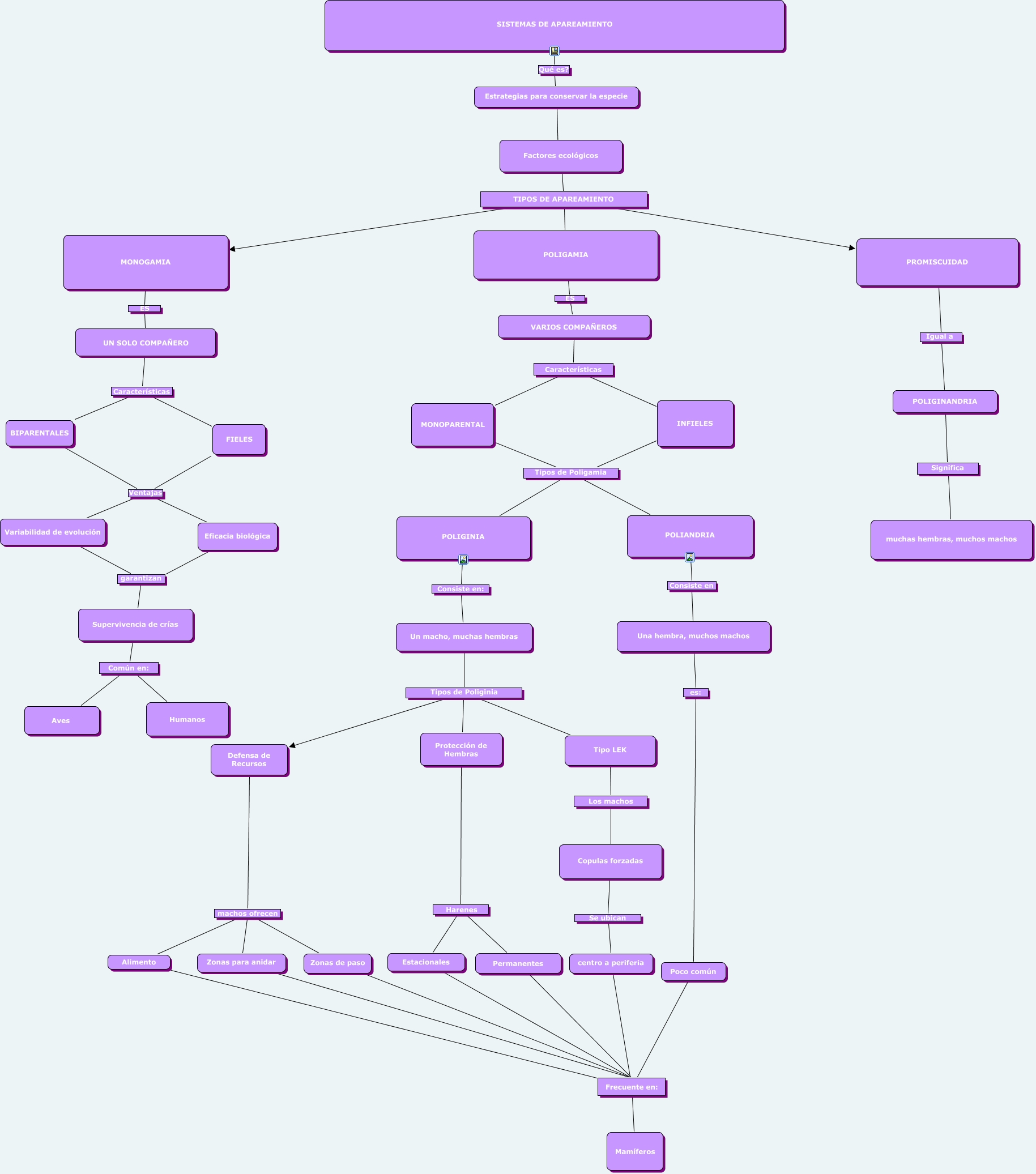 Este Cmap, tiene información relacionada con: SISTEMAS DE APAREAMIENTO, Factores ecológicos TIPOS DE APAREAMIENTO MONOGAMIA, UN SOLO COMPAÑERO Características FIELES, INFIELES Tipos de Poligamia POLIGINIA, POLIANDRIA Consiste en Una hembra, muchos machos, BIPARENTALES Ventajas Eficacia biológica, VARIOS COMPAÑEROS Características INFIELES, Supervivencia de crías Común en: Humanos, Defensa de Recursos machos ofrecen Zonas de paso, Un macho, muchas hembras Tipos de Poliginia Defensa de Recursos, Poco común Frecuente en: Mamíferos, MONOPARENTAL Tipos de Poligamia POLIGINIA, Protección de Hembras Harenes Permanentes, Una hembra, muchos machos es: Poco común, VARIOS COMPAÑEROS Características MONOPARENTAL, Supervivencia de crías Común en: Aves, MONOGAMIA ES UN SOLO COMPAÑERO, POLIGAMIA ES VARIOS COMPAÑEROS, Permanentes Frecuente en: Mamíferos, Defensa de Recursos machos ofrecen Alimento, Un macho, muchas hembras Tipos de Poliginia Protección de Hembras
