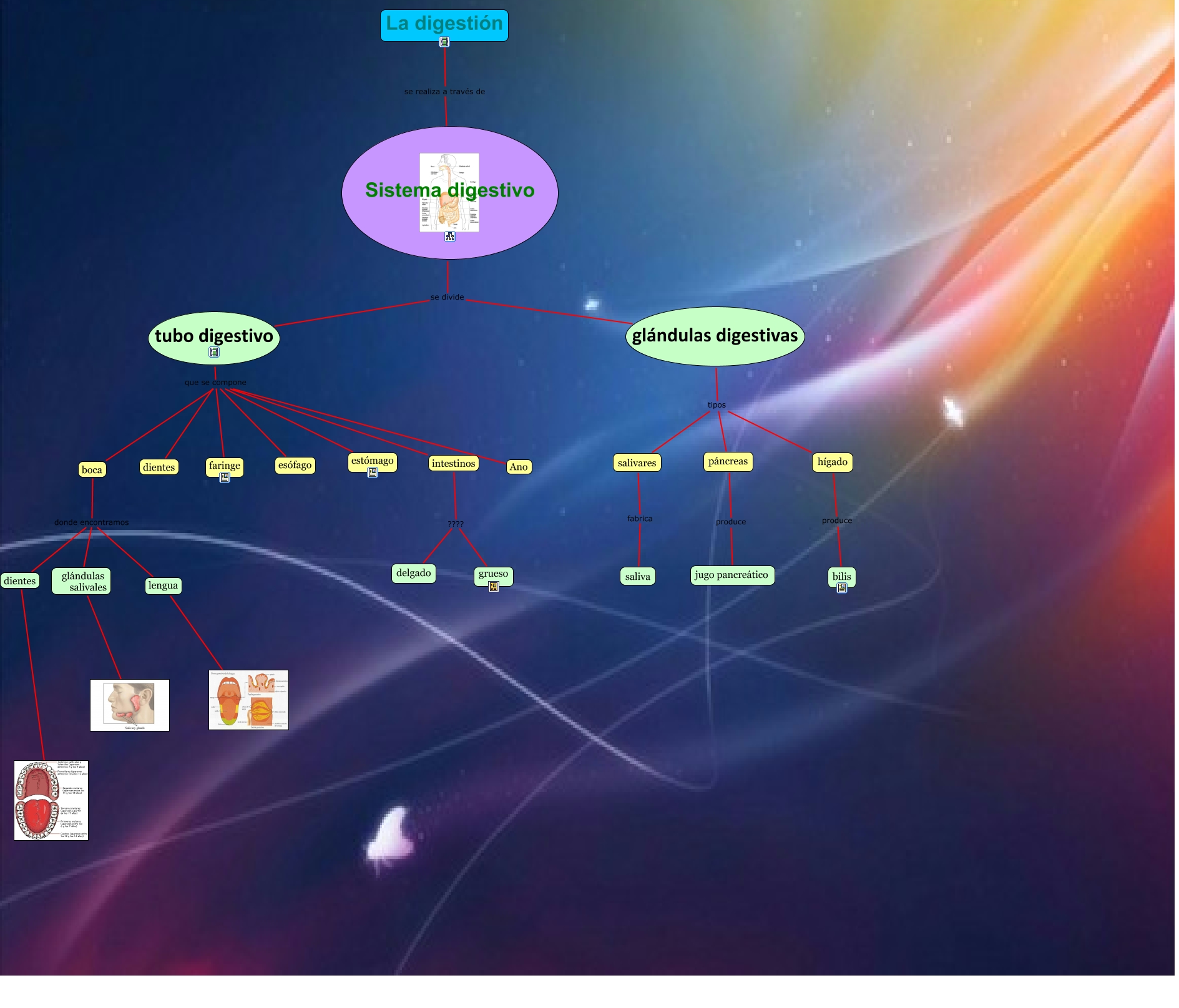 Este Cmap, tiene información relacionada con: Sistema digestivo 2, boca que se compone intestinos, La digestión se realiza a través de Sistema digestivo, glándulas digestivas tipos páncreas, boca que se compone faringe, dientes ????, boca que se compone estómago, tubo digestivo que se compone dientes, tubo digestivo que se compone estómago, intestinos ???? delgado, tubo digestivo que se compone faringe, boca donde encontramos lengua, tubo digestivo que se compone esófago, hígado produce bilis, boca donde encontramos glándulas salivales, páncreas produce jugo pancreático, tubo digestivo que se compone intestinos, boca que se compone dientes, lengua, boca que se compone esófago, Sistema digestivo se divide tubo digestivo