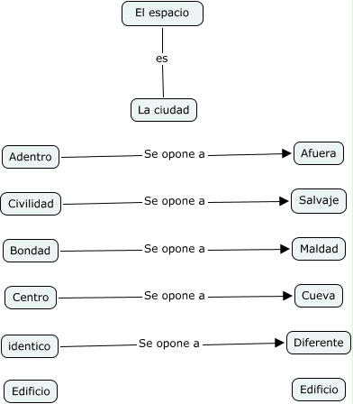 Este Cmap, tiene información relacionada con: El espacio humanizado, El espacio es La ciudad, Civilidad Se opone a Salvaje, Bondad Se opone a Maldad, Centro Se opone a Cueva, identico Se opone a Diferente, Adentro Se opone a Afuera