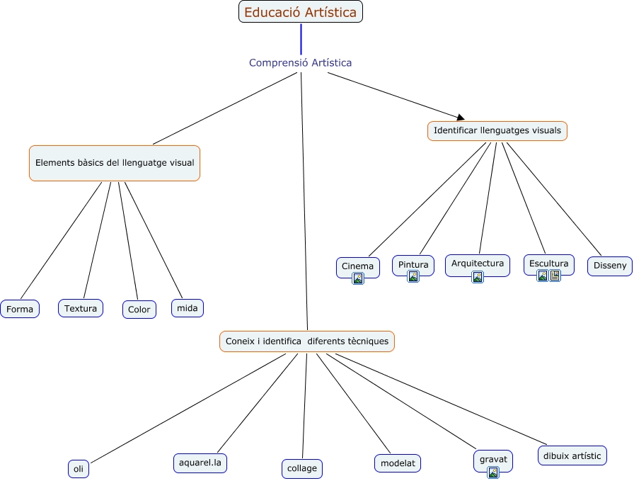 Este Cmap, tiene información relacionada con: Comprensió Artística, Elements bàsics del llenguatge visual Textura, Identificar llenguatges visuals Arquitectura, Elements bàsics del llenguatge visual Color, Coneix i identifica diferents tècniques dibuix artístic, Identificar llenguatges visuals Disseny, Identificar llenguatges visuals Escultura, Coneix i identifica diferents tècniques gravat, Identificar llenguatges visuals Cinema, Identificar llenguatges visuals Pintura, Coneix i identifica diferents tècniques oli, Elements bàsics del llenguatge visual mida, Coneix i identifica diferents tècniques modelat, Coneix i identifica diferents tècniques aquarel.la, Educació Artística Comprensió Artística Coneix i identifica diferents tècniques, Educació Artística Comprensió Artística Identificar llenguatges visuals, Elements bàsics del llenguatge visual Forma, Coneix i identifica diferents tècniques collage, Educació Artística Comprensió Artística Elements bàsics del llenguatge visual