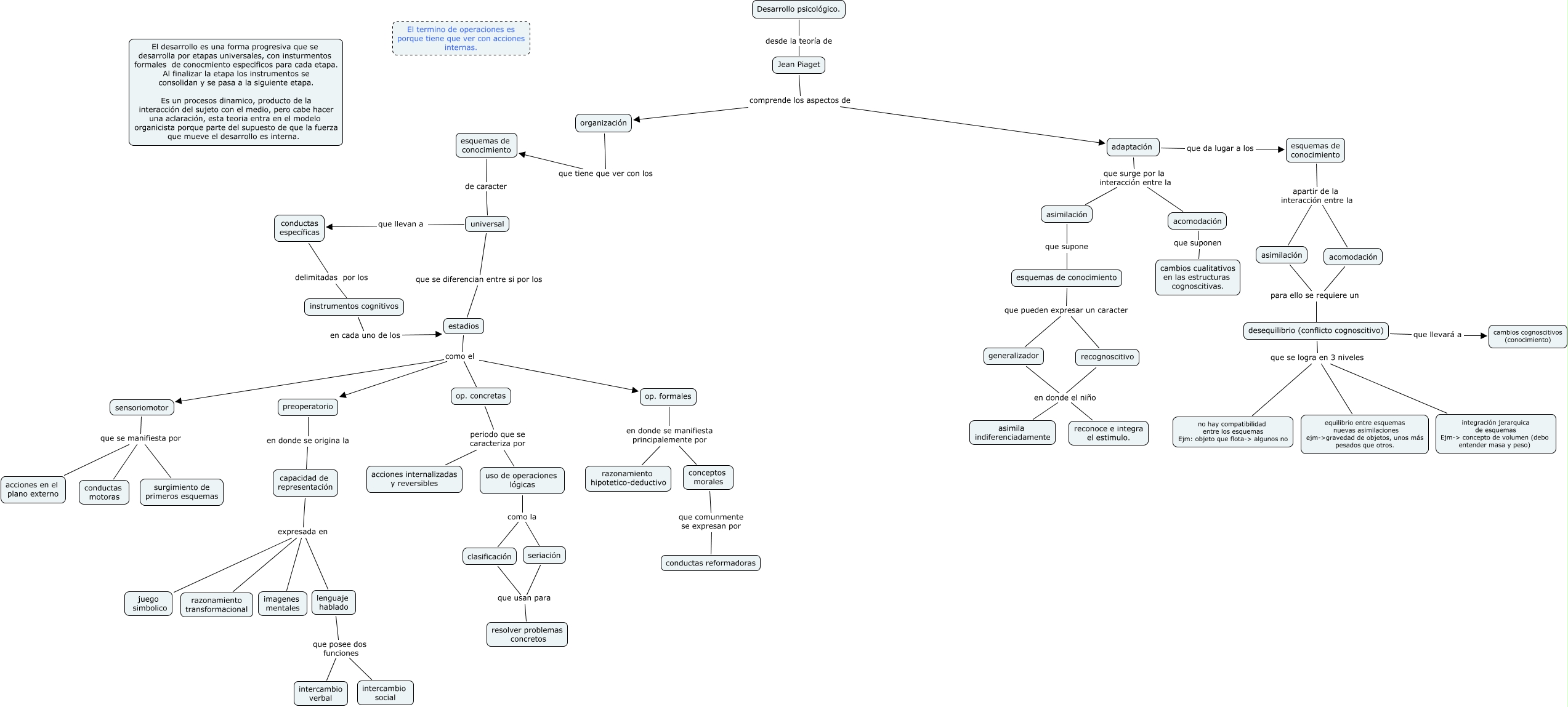Este Cmap, tiene información relacionada con: Teoria de Jean Piaget, esquemas de conocimiento apartir de la interacción entre la asimilación, adaptación que surge por la interacción entre la asimilación, sensoriomotor que se manifiesta por conductas motoras, uso de operaciones lógicas como la seriación, preoperatorio en donde se origina la capacidad de representación, lenguaje hablado que posee dos funciones intercambio verbal, seriación que usan para resolver problemas concretos, recognoscitivo en donde el niño reconoce e integra el estimulo., acomodación para ello se requiere un desequilibrio (conflicto cognoscitivo), generalizador en donde el niño asimila indiferenciadamente, esquemas de conocimiento apartir de la interacción entre la acomodación, conceptos morales que comunmente se expresan por conductas reformadoras, desequilibrio (conflicto cognoscitivo) que llevará a cambios cognoscitivos (conocimiento), op. formales en donde se manifiesta principalemente por razonamiento hipotetico-deductivo, estadios como el sensoriomotor, op. concretas periodo que se caracteriza por uso de operaciones lógicas, esquemas de conocimiento de caracter universal, uso de operaciones lógicas como la clasificación, op. concretas periodo que se caracteriza por acciones internalizadas y reversibles, estadios como el op. formales