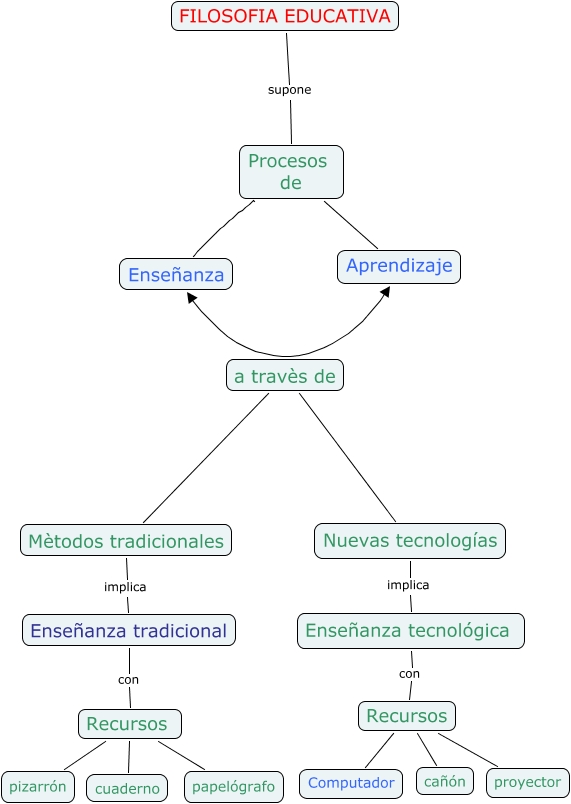 Este Cmap, tiene información relacionada con: sonia vallejo ,ana claudia bolaño, victoria blanco, Recursos cañón, Recursos proyector, Recursos papelógrafo, Procesos de Aprendizaje, a travès de Nuevas tecnologías, Enseñanza tradicional con Recursos, Recursos cuaderno, Recursos Computador, a travès de Mètodos tradicionales, Enseñanza Aprendizaje, Procesos de Enseñanza, FILOSOFIA EDUCATIVA supone Procesos de, Mètodos tradicionales implica Enseñanza tradicional, Recursos pizarrón, Enseñanza tecnológica con Recursos, Nuevas tecnologías implica Enseñanza tecnológica