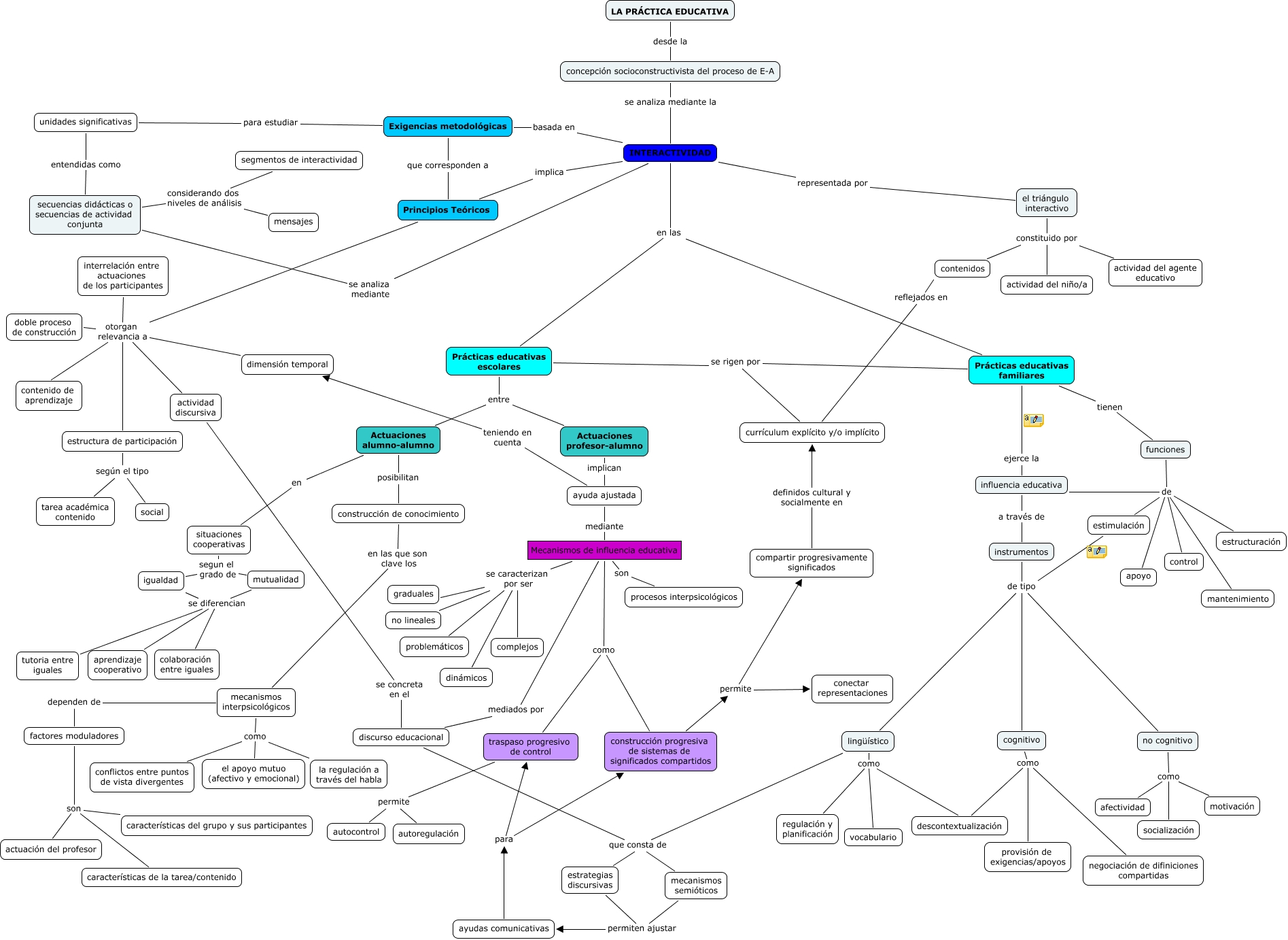 Este Cmap, tiene información relacionada con: 13-06-11 Grupo 1, construcción progresiva de sistemas de significados compartidos permite conectar representaciones, estructura de participación según el tipo tarea académica contenido, igualdad se diferencian colaboración entre iguales, influencia educativa a través de instrumentos, Mecanismos de influencia educativa mediados por discurso educacional, estimulación de tipo no cognitivo, Exigencias metodológicas para estudiar unidades significativas, funciones de estimulación, INTERACTIVIDAD basada en Exigencias metodológicas, factores moduladores son características de la tarea/contenido, lingüístico como vocabulario, Prácticas educativas escolares entre Actuaciones alumno-alumno, Principios Teóricos otorgan relevancia a actividad discursiva, estrategias discursivas permiten ajustar mecanismos semióticos, contenidos constituido por actividad del niño/a, INTERACTIVIDAD en las Prácticas educativas familiares, factores moduladores son características del grupo y sus participantes, ayuda ajustada mediante Mecanismos de influencia educativa, no cognitivo como afectividad, Mecanismos de influencia educativa como construcción progresiva de sistemas de significados compartidos