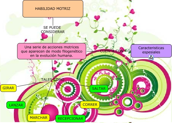 Este Cmap, tiene información relacionada con: HABILIDAD MOTRIZ, Una serie de acciones motrices que aparecen de modo filogenético en la evolución humana. TALES COMO GIRAR, Una serie de acciones motrices que aparecen de modo filogenético en la evolución humana. TALES COMO RECEPCIONAR, Una serie de acciones motrices que aparecen de modo filogenético en la evolución humana. TALES COMO CORRER, Una serie de acciones motrices que aparecen de modo filogenético en la evolución humana. TALES COMO SALTAR, Una serie de acciones motrices que aparecen de modo filogenético en la evolución humana. TALES COMO MARCHAR, Una serie de acciones motrices que aparecen de modo filogenético en la evolución humana. TALES COMO LANZAR, Una serie de acciones motrices que aparecen de modo filogenético en la evolución humana. CUENTA CON Caracteristicas espesiales, HABILIDAD MOTRIZ SE PUEDE CONSIDERAR Una serie de acciones motrices que aparecen de modo filogenético en la evolución humana.