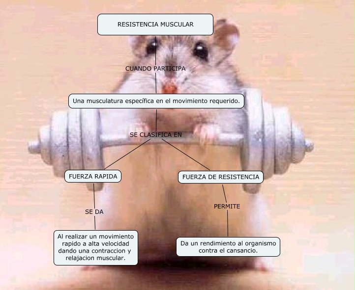 Este Cmap, tiene información relacionada con: RESISTENCIA MUSCULAR, FUERZA DE RESISTENCIA PERMITE Da un rendimiento al organismo contra el cansancio., RESISTENCIA MUSCULAR CUANDO PARTICIPA Una musculatura específica en el movimiento requerido., Una musculatura específica en el movimiento requerido. SE CLASIFICA EN FUERZA DE RESISTENCIA, Una musculatura específica en el movimiento requerido. SE CLASIFICA EN FUERZA RAPIDA, FUERZA RAPIDA SE DA Al realizar un movimiento rapido a alta velocidad dando una contraccion y relajacion muscular.