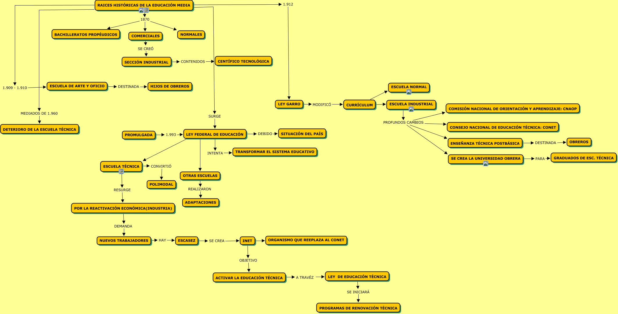 Este Cmap, tiene información relacionada con: RAICES HISTÓRICA DE LA EDUCACIÓN MEDIA, CURRÍCULUM ESCUELA INDUSTRIAL, SECCIÓN INDUSTRIAL CONTENIDOS CENTÍFICO TECNOLÓGICA, OTRAS ESCUELAS REALIZARON ADAPTACIONES, RAICES HISTÓRICAS DE LA EDUCACIÓN MEDIA SURGE LEY FEDERAL DE EDUCACIÓN, LEY DE EDUCACIÓN TÉCNICA SE INICIARÁ PROGRAMAS DE RENOVACIÓN TÉCNICA, INET OBJETIVO ACTIVAR LA EDUCACIÓN TÉCNICA, LEY FEDERAL DE EDUCACIÓN INTENTA TRANSFORMAR EL SISTEMA EDUCATIVO, RAICES HISTÓRICAS DE LA EDUCACIÓN MEDIA 1.909 - 1.910 ESCUELA DE ARTE Y OFICIO, ESCUELA INDUSTRIAL PROFUNDOS CAMBIOS ENSEÑANZA TÉCNICA POSTBÁSICA, LEY GARRO MODIFICÓ CURRÍCULUM, COMERCIALES SE CREÓ SECCIÓN INDUSTRIAL, ESCUELA INDUSTRIAL PROFUNDOS CAMBIOS SE CREA LA UNIVERSIDAD OBRERA, ESCUELA INDUSTRIAL PROFUNDOS CAMBIOS COMISIÓN NACIONAL DE ORIENTACIÓN Y APRENDIZAJE: CNAOP, INET ORGANISMO QUE REEPLAZA AL CONET, ACTIVAR LA EDUCACIÓN TÉCNICA A TRAVÉZ LEY DE EDUCACIÓN TÉCNICA, LEY FEDERAL DE EDUCACIÓN OTRAS ESCUELAS, PROMULGADA 1.993 LEY FEDERAL DE EDUCACIÓN, NUEVOS TRABAJADORES HAY ESCASEZ, LEY FEDERAL DE EDUCACIÓN DEBIDO SITUACIÓN DEL PAÍS, RAICES HISTÓRICAS DE LA EDUCACIÓN MEDIA 1870 BACHILLERATOS PROPÉUDICOS