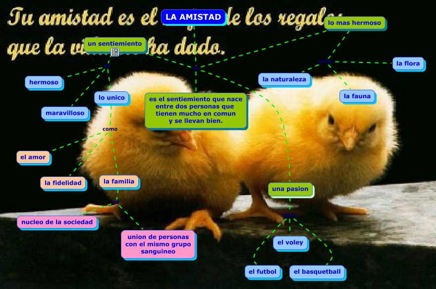 Este Cmap, tiene información relacionada con: LA AMISTAD, lo mas hermoso como la fauna, una pasion como el basquetball, un sentiemiento es maravilloso, lo unico como la fidelidad, LA AMISTAD es es el sentiemiento que nace entre dos personas que tienen mucho en comun y se llevan bien., lo unico como el amor, una pasion como el futbol, lo unico como la familia, lo mas hermoso como la naturaleza, la familia es nucleo de la sociedad, un sentiemiento es hermoso, LA AMISTAD es una pasion, un sentiemiento es lo unico, una pasion como el voley, LA AMISTAD es un sentiemiento, LA AMISTAD es lo mas hermoso, lo mas hermoso como la flora, la familia es union de personas con el mismo grupo sanguineo