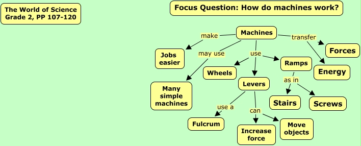 This Concept Map, created with IHMC CmapTools, has information related to: The world of Science, Pages 107-120, Machines make Jobs easier, Machines transfer Energy, Levers can Increase force, Levers use a Fulcrum, Machines use Levers, Ramps as in Stairs, Machines use Ramps, Levers can Move objects, Ramps as in Screws, Machines may use Many simple machines, Machines transfer Forces, Machines use Wheels