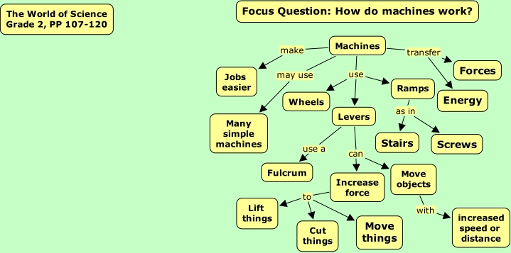 the world of science, pp 107-120, machines, fulcrum, cut things, increase force, the world of science grade 2, pp 107-120, move objects, many simple machines, move things, jobs easier, increased speed or distance, levers, forces, stairs, energy, lift things, wheels, screws, focus question how do machines work?, ramps