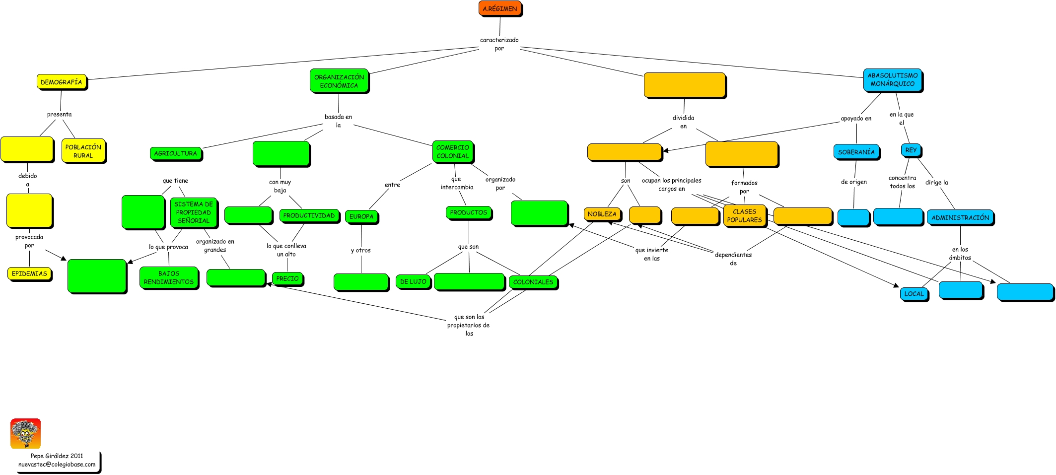 Este Cmap, tiene información relacionada con: aFIANZAR a.rÉGIMEN, COMERCIO COLONIAL que intercambia PRODUCTOS, ABASOLUTISMO MONÁRQUICO en la que el REY, REY concentra todos los, dependientes de, dividida en, lo que conlleva un alto PRECIO, provocada por EPIDEMIAS, debido a, A.RÉGIMEN caracterizado por DEMOGRAFÍA, PRODUCTOS que son COLONIALES, lo que provoca, COMERCIO COLONIAL entre EUROPA, AGRICULTURA que tiene, ocupan los principales cargos en, que son los propietarios de los, DEMOGRAFÍA presenta, ADMINISTRACIÓN en los ámbitos, AGRICULTURA que tiene SISTEMA DE PROPIEDAD SEÑORIAL, ABASOLUTISMO MONÁRQUICO apoyado en SOBERANÍA, formados por