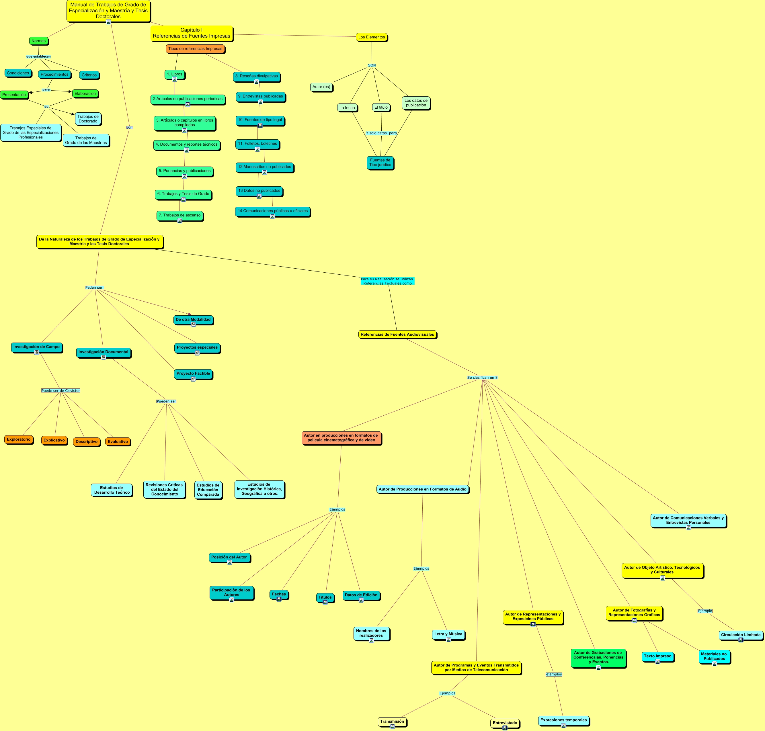 Este Cmap, tiene información relacionada con: Grupo 1, 5. Ponencias y publicaciones ???? 6. Trabajos y Tesis de Grado, Tipos de referencias Impresas 1. Libros, Autor de Programas y Eventos Transmitidos por Medios de Telecomunicación Ejemplos Entrevistado, Normas que establecen Criterios, Fuentes de Tipo jurídico ???? Los datos de publicación, Fuentes de Tipo jurídico ???? La fecha, Autor en producciones en formatos de película cinematográfica y de video Ejemplos Titulos, Autor en producciones en formatos de película cinematográfica y de video Ejemplos Posición del Autor, 12 Manuscritos no publicados ???? 13 Datos no publicados, Investigación Documental Pueden ser Estudios de Educación Comparada, Presentación de Trabajos de Doctorado, De la Naturaleza de los Trabajos de Grado de Especialización y Maestria y las Tesis Doctorales Peden ser Proyectos especiales, Autor de Fotografías y Representaciones Graficas ???? Materiales no Publicados, 8. Reseñas divulgativas ???? 9. Entrevistas publicadas, De la Naturaleza de los Trabajos de Grado de Especialización y Maestria y las Tesis Doctorales Peden ser Investigación Documental, 6. Trabajos y Tesis de Grado ???? 7. Trabajos de ascenso, Investigación Documental Pueden ser Revisiones Críticas del Estado del Conocimiento, Capítulo I Referencias de Fuentes Impresas ???? Los Elementos, 2.Artículos en publicaciones periódicas ???? 3. Artículos o capítulos en libros compilados, 1. Libros ???? 2.Artículos en publicaciones periódicas