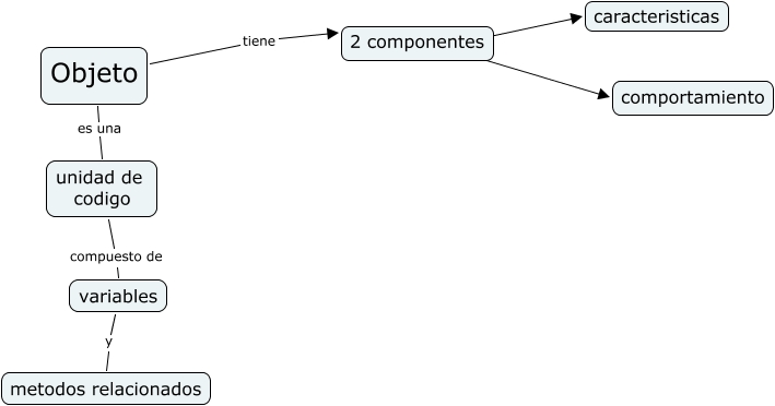 Este Cmap, tiene información relacionada con: Objeto, 2 componentes ???? caracteristicas, 2 componentes ???? comportamiento, unidad de codigo compuesto de variables, Objeto es una unidad de codigo, variables y metodos relacionados, Objeto tiene 2 componentes