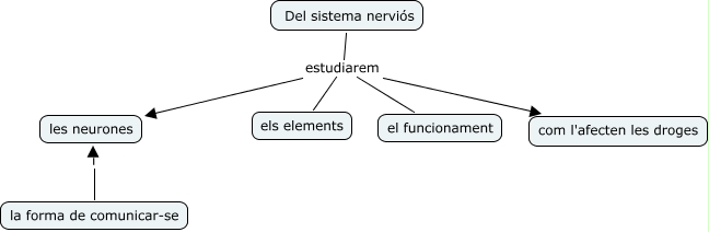 Este Cmap, tiene información relacionada con: sistema nerviós, Del sistema nerviós estudiarem els elements, la forma de comunicar-se i les neurones, Del sistema nerviós estudiarem les neurones, Del sistema nerviós estudiarem com l'afecten les droges, Del sistema nerviós estudiarem el funcionament