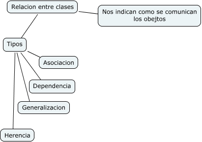 Este Cmap, tiene información relacionada con: Relacion entre clases, Relacion entre clases ???? Nos indican como se comunican los obejtos, Tipos ???? Dependencia, Relacion entre clases ???? Tipos, Tipos ???? Asociacion, Tipos ???? Herencia, Tipos ???? Generalizacion