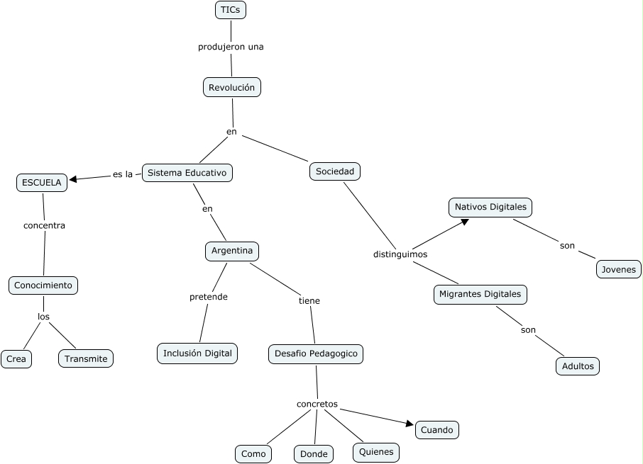 Este Cmap, tiene información relacionada con: CursoBasico742CMAP, ESCUELA concentra Conocimiento, Desafio Pedagogico concretos Quienes, Revolución en Sistema Educativo, TICs produjeron una Revolución, Nativos Digitales son Jovenes, Desafio Pedagogico concretos Donde, Sistema Educativo es la ESCUELA, Sistema Educativo en Argentina, Sociedad distinguimos Migrantes Digitales, Argentina tiene Desafio Pedagogico, Revolución en Sociedad, Migrantes Digitales son Adultos, Desafio Pedagogico concretos Como, Conocimiento los Transmite, Sociedad distinguimos Nativos Digitales, Desafio Pedagogico concretos Cuando, Conocimiento los Crea, Argentina pretende Inclusión Digital