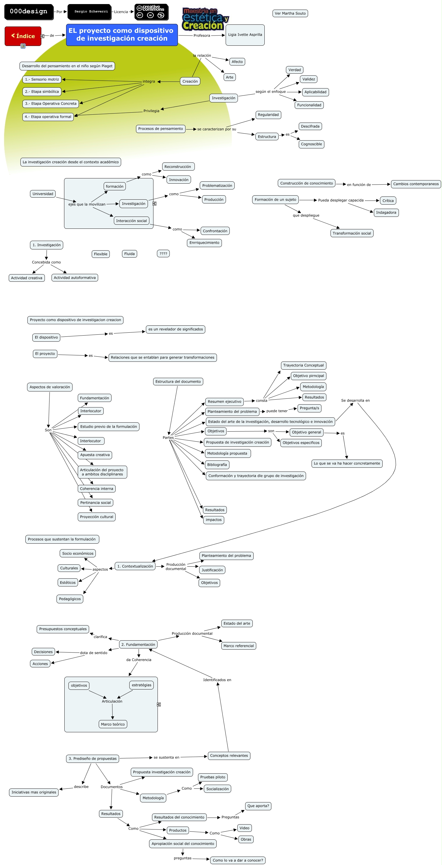 Este Cmap, tiene información relacionada con: El proyecto como dispositivo de investigación creación, Investigación como Producción, Investigación según el enfoque Aplicabilidad, Interacción social como Confrontación, Aspectos de valoración Son Apuesta creativa, Estado del arte de la investigación, desarrollo tecnológico e innovación Se desarrolla en 1. Contextualización, Estructura del documento Partes impactos, Planteamiento del problema puede tener Pregunta/s, Investigación como Problematización, El dispositivo es es un revelador de significados, Interacción social como Enrriquecimiento, EL proyecto como dispositivo de investigación creación Profesora Ligia Ivette Asprilla, Estructura del documento Partes Resultados, Investigación según el enfoque Validez, Conceptos relevantes Identificados en 2. Fundamentación, Metodología Como Pruebas piloto, 1. Contextualización Producción documental Justificación, Estructura del documento Partes Conformación y trayectoria dle grupo de investigación, Resumen ejecutivo consta Objetivo pirncipal, 3. Prediseño de propuestas Documentos Propuesta investigación creación, Resumen ejecutivo consta Trayectoria Conceptual