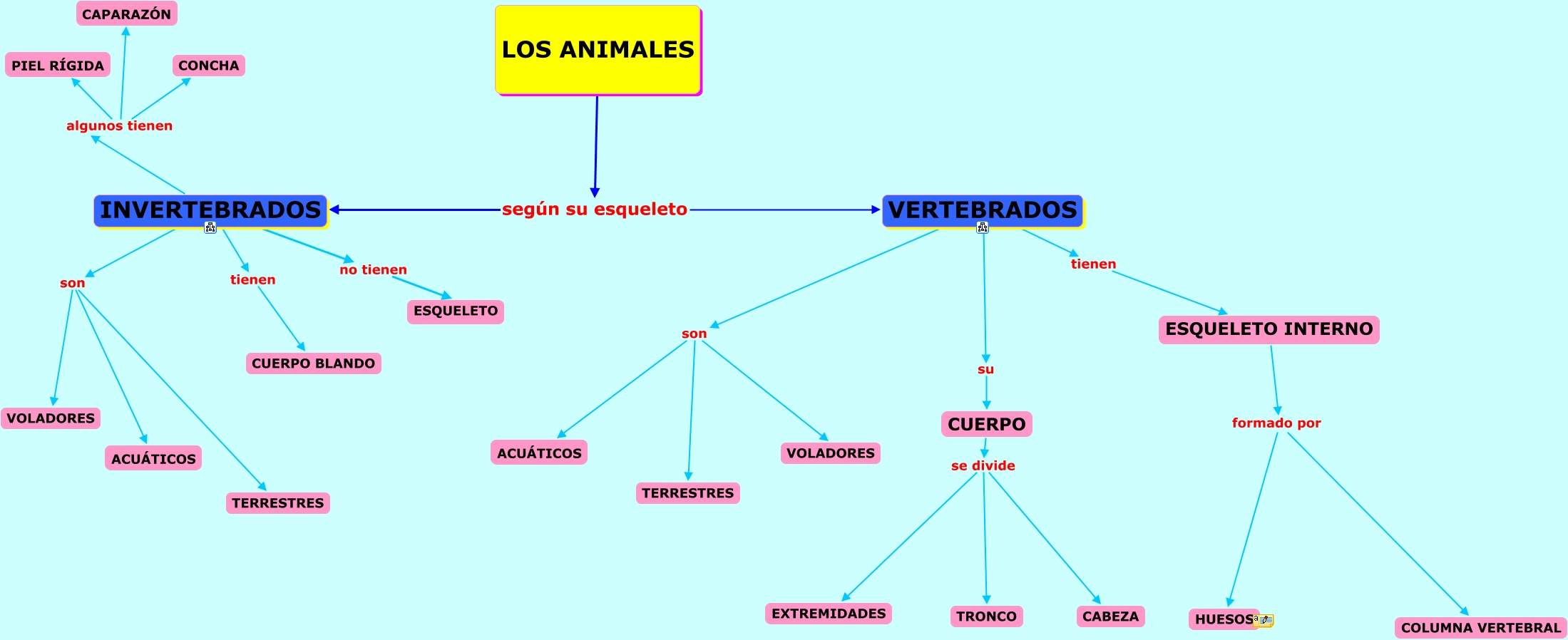 Este Cmap, tiene información relacionada con: CLASIFICACIÓN ANIMALES 3º PRIMARIA, VERTEBRADOS son ACUÁTICOS, INVERTEBRADOS son TERRESTRES, VERTEBRADOS son VOLADORES, ESQUELETO INTERNO formado por HUESOS, CUERPO se divide CABEZA, CUERPO se divide EXTREMIDADES, LOS ANIMALES según su esqueleto INVERTEBRADOS, INVERTEBRADOS algunos tienen CONCHA, CUERPO se divide TRONCO, VERTEBRADOS son TERRESTRES, INVERTEBRADOS no tienen ESQUELETO, INVERTEBRADOS algunos tienen CAPARAZÓN, INVERTEBRADOS algunos tienen PIEL RÍGIDA, VERTEBRADOS su CUERPO, VERTEBRADOS tienen ESQUELETO INTERNO, INVERTEBRADOS son VOLADORES, ESQUELETO INTERNO formado por COLUMNA VERTEBRAL, LOS ANIMALES según su esqueleto VERTEBRADOS, INVERTEBRADOS tienen CUERPO BLANDO, INVERTEBRADOS son ACUÁTICOS