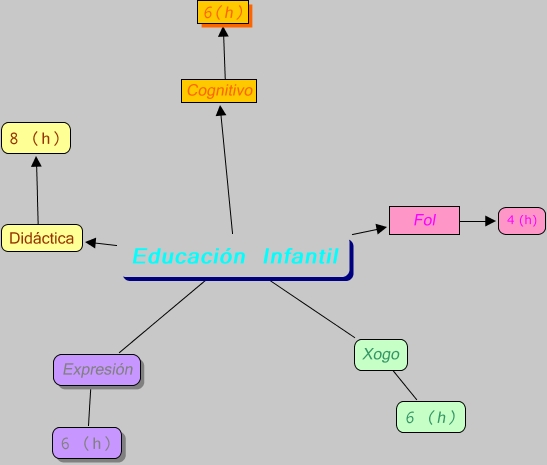 Este Cmap, tiene información relacionada con: Educación Infantil Asignaturas y horas, Xogo Educación Infantil Expresión, Didáctica ???? 8 (h), Xogo Educación Infantil Didáctica, Xogo Educación Infantil Fol, Xogo ???? 6 (h), Xogo Educación Infantil Cognitivo, Cognitivo ???? 6(h), Fol ???? 4 (h), Expresión ???? 6 (h)
