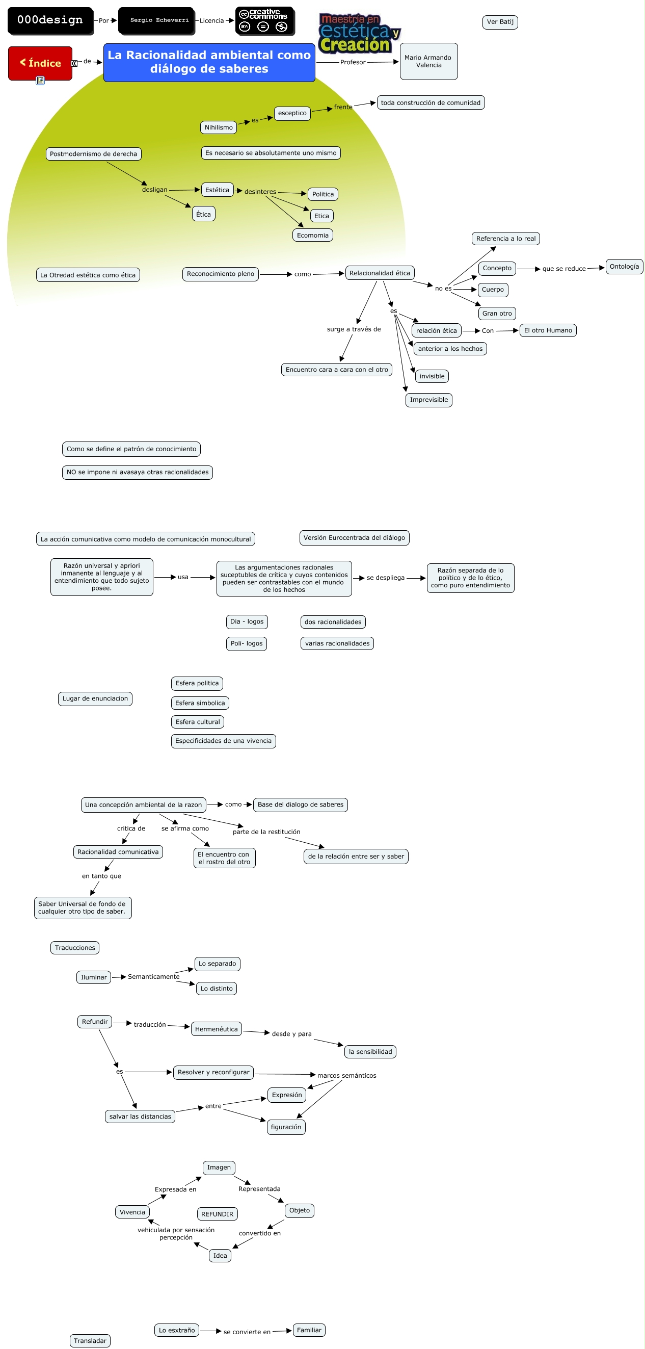 Este Cmap, tiene información relacionada con: La racionalidad ambiental como base del diálogo de saberes, Resolver y reconfigurar marcos semánticos Expresión, Hermenéutica desde y para la sensibilidad, Relacionalidad ética es Imprevisible, ???? de La Racionalidad ambiental como diálogo de saberes, Lo esxtraño se convierte en Familiar, Objeto convertido en Idea, Imagen Representada Objeto, Refundir es salvar las distancias, Relacionalidad ética es anterior a los hechos, Relacionalidad ética es relación ética, esceptico frente toda construcción de comunidad, Una concepción ambiental de la razon como Base del dialogo de saberes, Relacionalidad ética no es Gran otro, Relacionalidad ética no es Cuerpo, Estética desinteres Etica, Nihilismo es esceptico, Vivencia Expresada en Imagen, Resolver y reconfigurar marcos semánticos figuración, Las argumentaciones racionales suceptubles de crítica y cuyos contenidos pueden ser contrastables con el mundo de los hechos se despliega Razón separada de lo político y de lo ético, como puro entendimiento, Relacionalidad ética es invisible