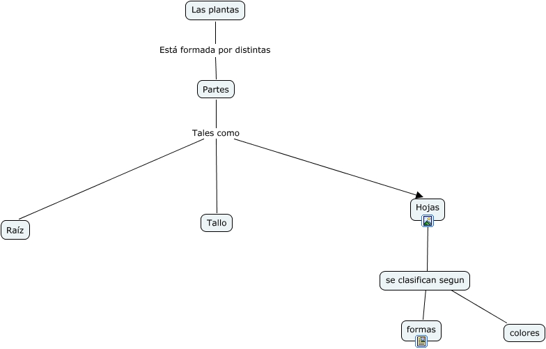 Este Cmap, tiene información relacionada con: Botánica, Hojas ???? colores, Hojas ???? formas, Partes Tales como Tallo, Partes Tales como Raíz, Las plantas Está formada por distintas Partes, Partes Tales como Hojas
