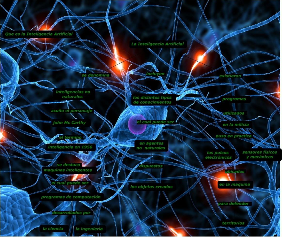 Este Cmap, tiene información relacionada con: inteligencia aertificial, La Inteligencia Artificial se denomina inteligencias no naturales, inteligencia en 1956 se destaco maquinas inteligentes, La Inteligencia Artificial existieron programas, los pulsos electrónicos ubicados en la maquina, sensores físicos y mecánicos ubicados en la maquina, inteligencias no naturales acuño el personaje john Mc Carthy, en agentes no naturales dispuestos los objetos creados, en la milicia puso en practica sensores físicos y mecánicos, programas de computación desarrollados por la ciencia, en la milicia puso en practica los pulsos electrónicos, maquinas inteligentes el cual puede ser programas de computación, La Inteligencia Artificial incluyen los distintos tipos de conocimientos, los distintos tipos de conocimientos el cual puede ser en agentes no naturales, en la maquina para defender territorios, programas de computación desarrollados por la ingenieria, john Mc Carthy el termino inteligencia en 1956, programas utilizados en la milicia
