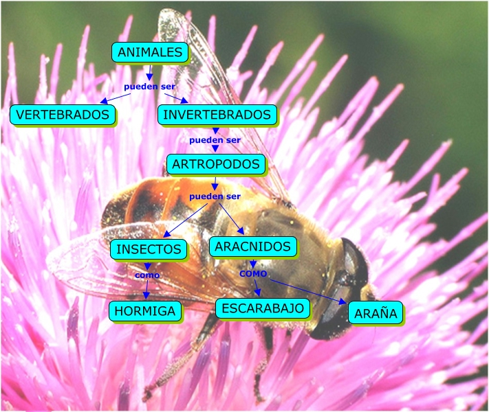 Este Cmap, tiene información relacionada con: ANIMALES, ARACNIDOS COMO ARAÑA, ANIMALES pueden ser INVERTEBRADOS, ARACNIDOS COMO ESCARABAJO, INSECTOS como HORMIGA, ANIMALES pueden ser VERTEBRADOS, ARTROPODOS pueden ser ARACNIDOS, INVERTEBRADOS pueden ser ARTROPODOS, ARTROPODOS pueden ser INSECTOS