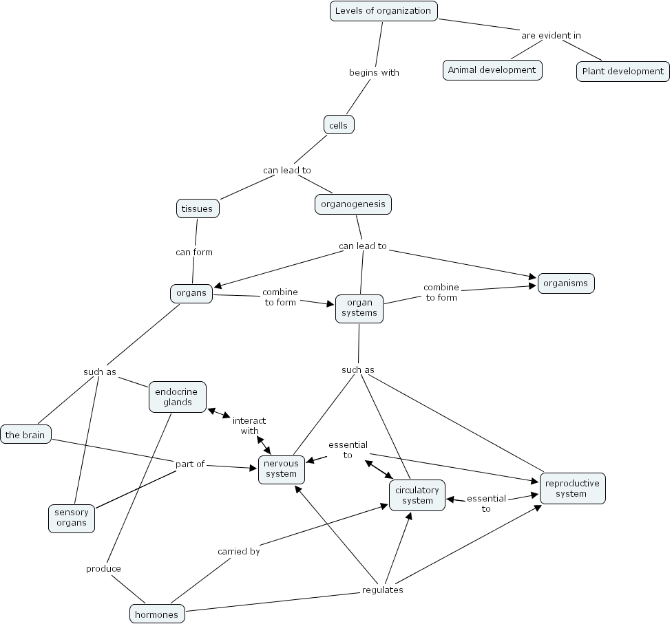 organs combine to form organ systems, endocrine glands interact with nervous system, hormones carried by circulatory system, sensory organs part of nervous system, circulatory system essential to reproductive system, organ systems such as nervous system, organ systems such as circulatory system, organ systems such as reproductive system, cells can lead to tissues, cells can lead to organogenesis, organ systems combine to form organisms, tissues can form organs, Levels of organization are evident in Animal development, Levels of organization are evident in Plant development, organogenesis can lead to organ systems, organogenesis can lead to organisms, organogenesis can lead to organs, nervous system essential to reproductive system, nervous system essential to circulatory system, nervous system essential to circulatory system, nervous system essential to circulatory system, endocrine glands produce hormones, organs such as the brain, organs such as endocrine glands, organs such as sensory organs, Levels of organization begins with cells, sensory organs part of nervous system, the brain part of nervous system, hormones regulates circulatory system, hormones regulates reproductive system, hormones regulates nervous system