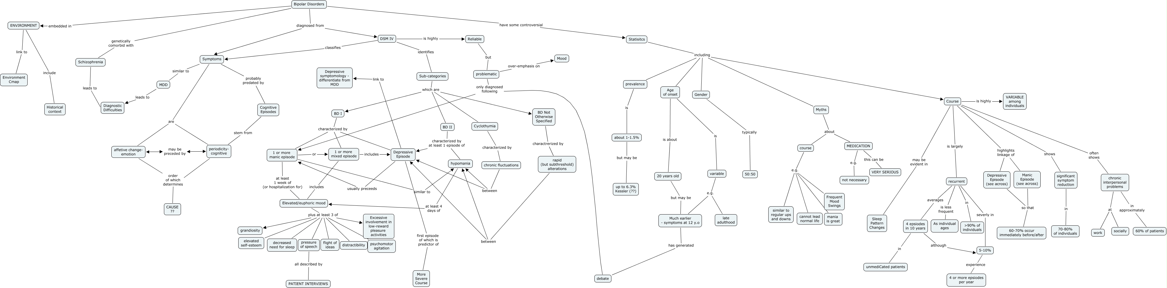 BD Behavioral, Depressive Episode link to Depressive symptomology - differentiate from MDD, BD Not Otherwise Specified charactrerized by rapid (but subthreshold) alterations, Elevated/euphoric mood plus at least 3 of distractibility, periodicity- cognitive order of which determines CAUSE ??, Course is highly VARIABLE among individuals, chronic interpersonal problems at work, Symptoms are periodicity- cognitive, 1 or more manic episode or 1 or more mixed episode, Statisitcs including Myths, Elevated/euphoric mood plus at least 3 of psychomotor agitation
