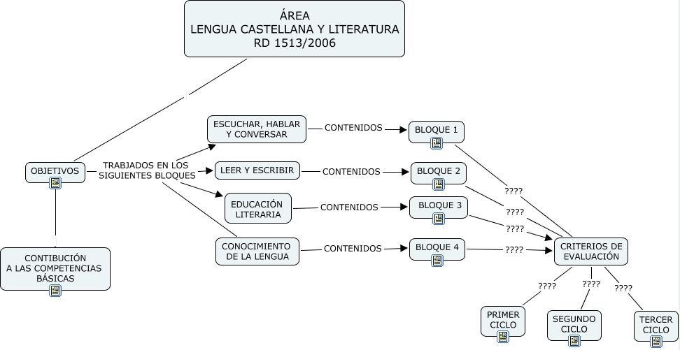 Este Cmap, tiene información relacionada con: LENGUA CASTALLANA Y LITERATURA OBJETIVOS Y CONTENIDOS, BLOQUE 4 ???? CRITERIOS DE EVALUACIÓN, BLOQUE 3 ???? CRITERIOS DE EVALUACIÓN, OBJETIVOS TRABJADOS EN LOS SIGUIENTES BLOQUES LEER Y ESCRIBIR, CRITERIOS DE EVALUACIÓN ???? SEGUNDO CICLO, ÁREA LENGUA CASTELLANA Y LITERATURA RD 1513/2006 OBJETIVOS, CRITERIOS DE EVALUACIÓN ???? PRIMER CICLO, CONOCIMIENTO DE LA LENGUA CONTENIDOS BLOQUE 4, OBJETIVOS TRABJADOS EN LOS SIGUIENTES BLOQUES CONOCIMIENTO DE LA LENGUA, OBJETIVOS TRABJADOS EN LOS SIGUIENTES BLOQUES ESCUCHAR, HABLAR Y CONVERSAR, OBJETIVOS CONTIBUCIÓN A LAS COMPETENCIAS BÁSICAS, CRITERIOS DE EVALUACIÓN ???? TERCER CICLO, LEER Y ESCRIBIR CONTENIDOS BLOQUE 2, OBJETIVOS TRABJADOS EN LOS SIGUIENTES BLOQUES EDUCACIÓN LITERARIA, BLOQUE 2 ???? CRITERIOS DE EVALUACIÓN, BLOQUE 1 ???? CRITERIOS DE EVALUACIÓN, ESCUCHAR, HABLAR Y CONVERSAR CONTENIDOS BLOQUE 1, EDUCACIÓN LITERARIA CONTENIDOS BLOQUE 3
