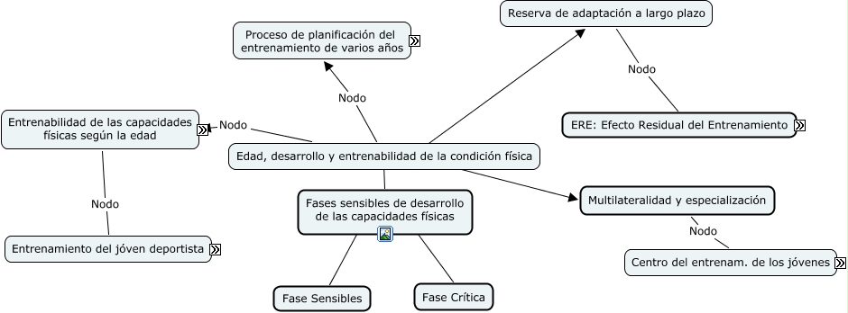Este Cmap, tiene información relacionada con: Cap 5, Planificación plurianual ???? Bianual, Fases sensibles de desarrollo de las capacidades físicas ???? Fase Sensibles, Planificación plurianual ???? Cuatrienal, Edad, desarrollo y entrenabilidad de la condición física ???? Reserva de adaptación a largo plazo, Fases sensibles de desarrollo de las capacidades físicas ???? Fase Crítica, Edad, desarrollo y entrenabilidad de la condición física ???? Fases sensibles de desarrollo de las capacidades físicas, Edad, desarrollo y entrenabilidad de la condición física Nodo Entrenabilidad de las capacidades físicas según la edad, Edad, desarrollo y entrenabilidad de la condición física Nodo Proceso de planificación del entrenamiento de varios años, Entrenabilidad de las capacidades físicas según la edad Nodo Entrenamiento del jóven deportista, Edad, desarrollo y entrenabilidad de la condición física ???? Multilateralidad y especialización, Reserva de adaptación a largo plazo Nodo ERE: Efecto Residual del Entrenamiento, Multilateralidad y especialización Nodo Centro del entrenam. de los jóvenes