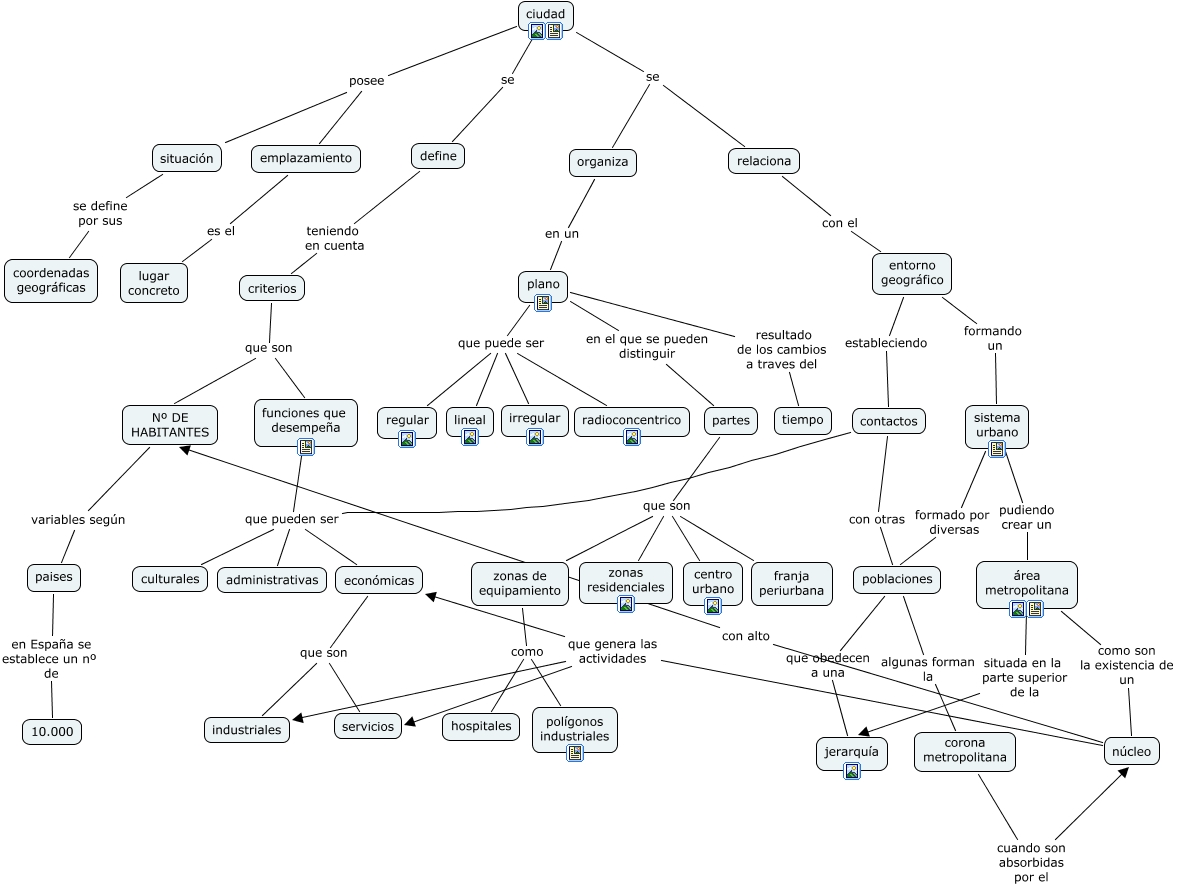 Este Cmap, tiene información relacionada con: La ciudad, funciones que desempeña que pueden ser culturales, sistema urbano formado por diversas poblaciones, ciudad posee situación, contactos que pueden ser culturales, entorno geográfico estableciendo contactos, partes que son centro urbano, define teniendo en cuenta criterios, núcleo que genera las actividades servicios, Nº DE HABITANTES variables según paises, ciudad se define, plano resultado de los cambios a traves del tiempo, ciudad se organiza, partes que son zonas de equipamiento, plano que puede ser irregular, económicas que son servicios, contactos que pueden ser administrativas, área metropolitana como son la existencia de un núcleo, criterios que son funciones que desempeña, criterios que son Nº DE HABITANTES, núcleo que genera las actividades industriales