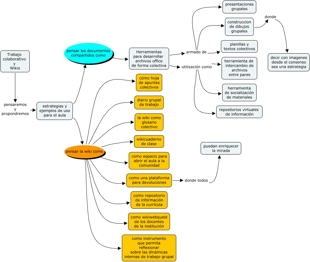 Este Cmap, tiene información relacionada con: La Wiki en el aula, estrategias y ejemplos de uso para el aula pensar la wiki como como wikiwebquest de los docentes de la institución, Trabajo colaborativo y Wikis pensaremos y propondremos estrategias y ejemplos de uso para el aula, estrategias y ejemplos de uso para el aula pensar la wiki como cómo hoja de apuntes colectivos, estrategias y ejemplos de uso para el aula pensar la wiki como como una plataforma para devoluciones, estrategias y ejemplos de uso para el aula pensar la wiki como wikicuaderno de clase, Herramientas para desarrollar archivos office de forma colectiva armado de planillas y textos colectivos, estrategias y ejemplos de uso para el aula pensar la wiki como diario grupal de trabajo, Herramientas para desarrollar archivos office de forma colectiva armado de presentaciones grupales, estrategias y ejemplos de uso para el aula pensar la wiki como como espacio para abrir el aula a la comunidad, Herramientas para desarrollar archivos office de forma colectiva utilización como herramienta de intercambio de archivos entre pares, estrategias y ejemplos de uso para el aula pensar la wiki como como instrumento que permita reflexionar sobre las dinámicas internas de trabajo grupal, construccion de dibujos grupales donde decir con imagenes desde el consenso sea una estrategia, estrategias y ejemplos de uso para el aula pensar los documentos compartidos como Herramientas para desarrollar archivos office de forma colectiva, como una plataforma para devoluciones donde todos puedan enriquecer la mirada, estrategias y ejemplos de uso para el aula pensar la wiki como la wiki como glosario colectivo, Herramientas para desarrollar archivos office de forma colectiva armado de construccion de dibujos grupales, Herramientas para desarrollar archivos office de forma colectiva utilización como repositorios virtuales de información, Herramientas para desarrollar archivos office de forma colectiva utilización como herramienta de socialización de materiales, estrategias y ejemplos de uso para el aula pensar la wiki como como repositorio de información de la currícula
