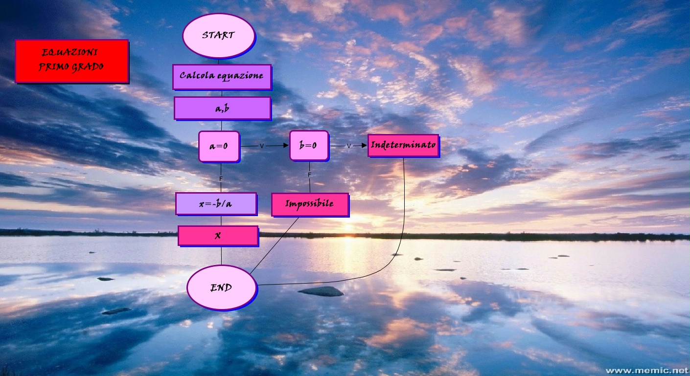 Questa Cmap, creata con IHMC CmapTools, contiene informazioni relative a: eleni e nataliya 1°, START Calcola equazione, b=0 V Indeterminato, a=0 V b=0, b=0 F Impossibile, Indeterminato ???? END, Calcola equazione F END, Impossibile ???? END