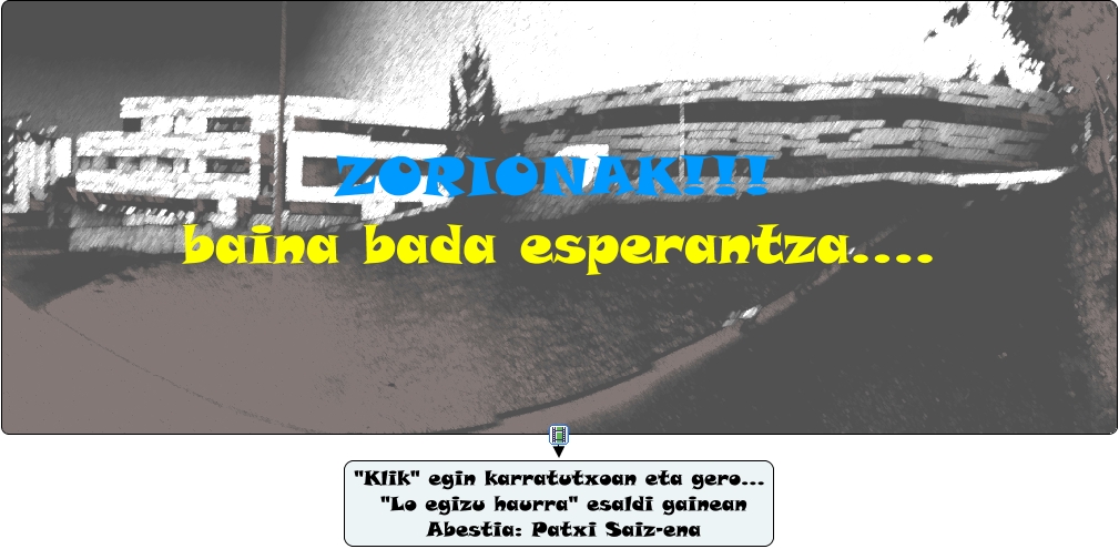 Este Cmap, tiene información relacionada con: GABONAK GABON, ZORIONAK!!! baina bada esperantza.... ???? "Klik" egin karratutxoan eta gero... "Lo egizu haurra" esaldi gainean Abestia: Patxi Saiz-ena