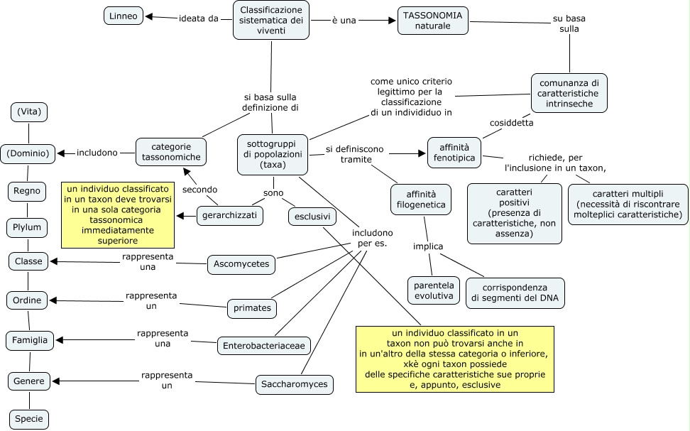 Questa Cmap, creata con IHMC CmapTools, contiene informazioni relative a: Tassonomia viventi_Franc, Classificazione sistematica dei viventi ideata da Linneo, Regno Plylum, Plylum Classe, Genere Specie, Classificazione sistematica dei viventi si basa sulla definizione di categorie tassonomiche, Ordine Famiglia, sottogruppi di popolazioni (taxa) includono per es. Saccharomyces, (Vita) (Dominio), affinità fenotipica richiede, per l'inclusione in un taxon, caratteri multipli (necessità di riscontrare molteplici caratteristiche), comunanza di caratteristiche intrinseche come unico criterio legittimo per la classificazione di un individiduo in sottogruppi di popolazioni (taxa), comunanza di caratteristiche intrinseche cosiddetta affinità fenotipica, Saccharomyces rappresenta un Genere, Ascomycetes rappresenta una Classe, affinità fenotipica richiede, per l'inclusione in un taxon, caratteri positivi (presenza di caratteristiche, non assenza), sottogruppi di popolazioni (taxa) sono esclusivi, sottogruppi di popolazioni (taxa) includono per es. Ascomycetes, sottogruppi di popolazioni (taxa) includono per es. Enterobacteriaceae, affinità filogenetica implica parentela evolutiva, primates rappresenta un Ordine, Classificazione sistematica dei viventi è una TASSONOMIA naturale