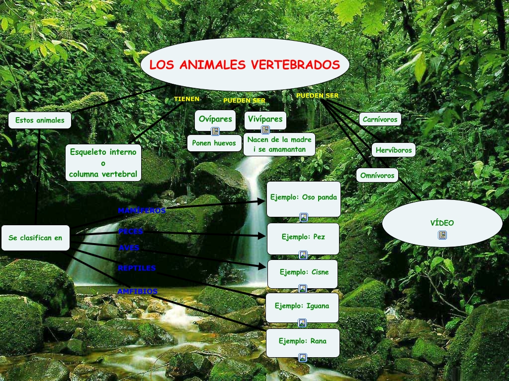 Este Cmap, tiene información relacionada con: Los animales Vertebrados, LOS ANIMALES VERTEBRADOS Estos animales, LOS ANIMALES VERTEBRADOS PUEDEN SER VÍDEO, LOS ANIMALES VERTEBRADOS TIENEN Esqueleto interno o columna vertebral, LOS ANIMALES VERTEBRADOS TIENEN Esqueleto interno o columna vertebral, Se clasifican en PECES Ejemplo: Pez, LOS ANIMALES VERTEBRADOS PUEDEN SER Ovípares, Se clasifican en AVES Ejemplo: Cisne, LOS ANIMALES VERTEBRADOS PUEDEN SER Omnívoros, Se clasifican en REPTILES Ejemplo: Iguana, Se clasifican en MAMÍFEROS Ejemplo: Oso panda, LOS ANIMALES VERTEBRADOS PUEDEN SER Carnívoros, Se clasifican en AMFIBIOS Ejemplo: Rana, Vivípares ???? Nacen de la madre i se amamantan, LOS ANIMALES VERTEBRADOS PUEDEN SER Hervíboros, LOS ANIMALES VERTEBRADOS PUEDEN SER Vivípares, Estos animales ???? Se clasifican en