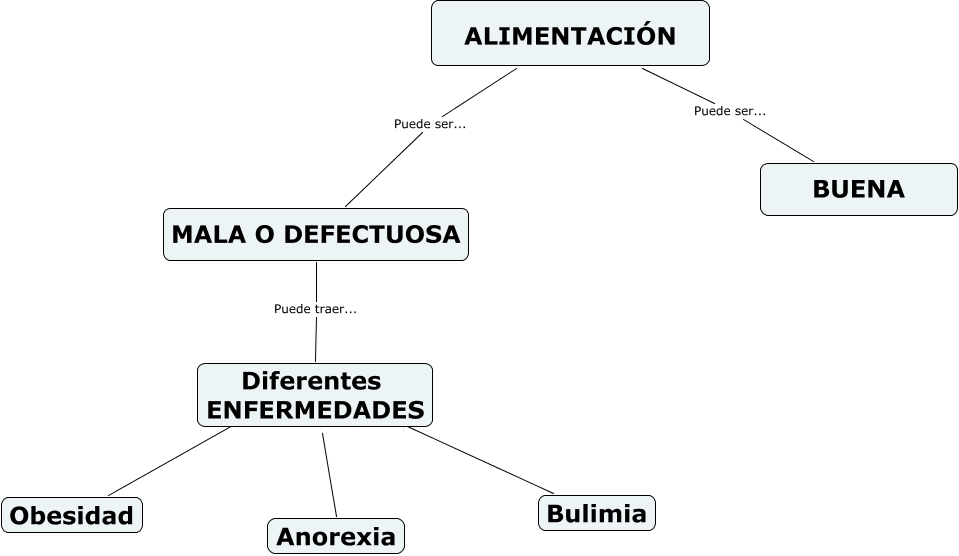 Este Cmap, tiene información relacionada con: alimentacion, ALIMENTACIÓN Puede ser... BUENA, Diferentes ENFERMEDADES Anorexia, Diferentes ENFERMEDADES Obesidad, ALIMENTACIÓN Puede ser... MALA O DEFECTUOSA, Diferentes ENFERMEDADES Bulimia, MALA O DEFECTUOSA Puede traer... Diferentes ENFERMEDADES
