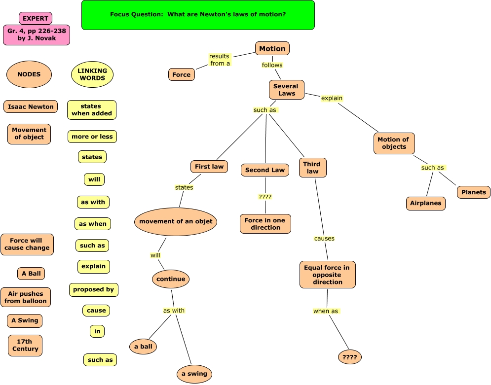 This Concept Map, created with IHMC CmapTools, has information related to: Newton Laws group, Several Laws such as First law, Several Laws explain Motion of objects, First law states movement of an objet, Several Laws such as Third law, Motion of objects such as Airplanes, continue as with a ball, continue as with a swing, Second Law ???? Force in one direction, Motion of objects such as Planets, Several Laws such as Second Law, Third law causes Equal force in opposite direction, Motion results from a Force, Equal force in opposite direction when as ????, movement of an objet will continue, Motion follows Several Laws