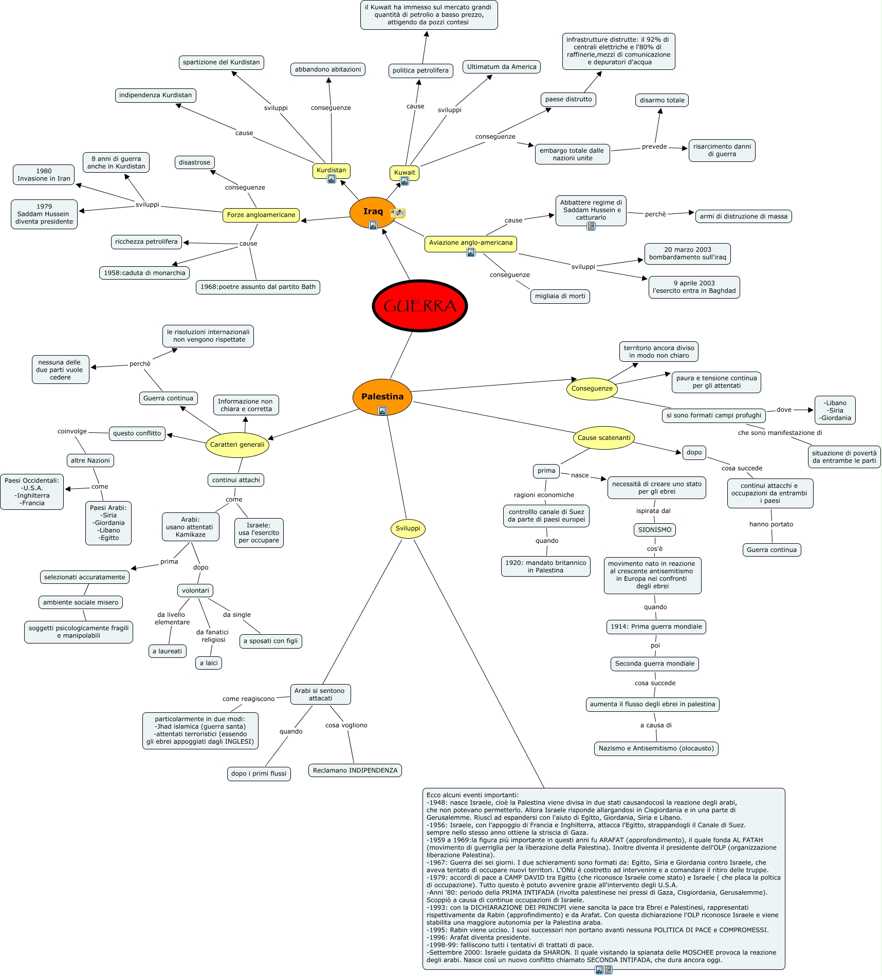 Questa Cmap, creata con IHMC CmapTools, contiene informazioni relative a: mappa completa palestina, Caratteri generali ???? questo conflitto, continui attacchi e occupazioni da entrambi i paesi hanno portato Guerra continua, Forze angloamericane sviluppi 8 anni di guerra anche in Kurdistan, Kuwait cause politica petrolifera, Abbattere regime di Saddam Hussein e catturarlo perchè armi di distruzione di massa, Aviazione anglo-americana sviluppi 20 marzo 2003 bombardamento sull'iraq, Palestina ???? Cause scatenanti, controlllo canale di Suez da parte di paesi europei quando 1920: mandato britannico in Palestina, Conseguenze ???? paura e tensione continua per gli attentati, aumenta il flusso degli ebrei in palestina a causa di Nazismo e Antisemitismo (olocausto), altre Nazioni come Paesi Occidentali: -U.S.A. -Inghilterra -Francia, embargo totale dalle nazioni unite prevede risarcimento danni di guerra, Forze angloamericane sviluppi 1980 Invasione in Iran, Aviazione anglo-americana cause Abbattere regime di Saddam Hussein e catturarlo, GUERRA dove Palestina, Caratteri generali ???? continui attachi, Arabi si sentono attacati quando dopo i primi flussi, Forze angloamericane cause 1968:poetre assunto dal partito Bath, altre Nazioni come Paesi Arabi: -Siria -Giordania -Libano -Egitto, GUERRA dove Palestina