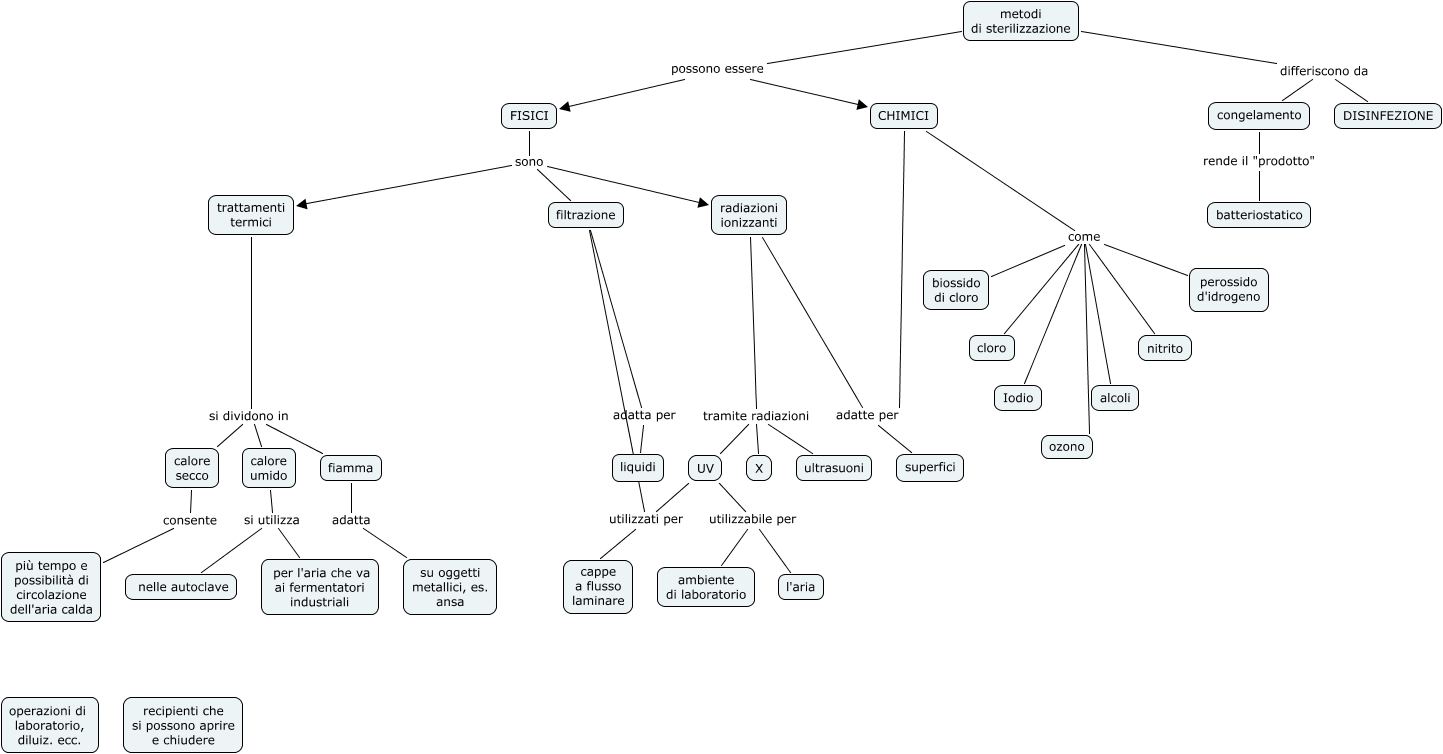 Questa Cmap, creata con IHMC CmapTools, contiene informazioni relative a: sterilizzazione_amicucci staffolani migliozzi ferretti, calore umido si utilizza per l'aria che va ai fermentatori industriali, congelamento rende il "prodotto" batteriostatico, CHIMICI come ozono, calore secco consente più tempo e possibilità di circolazione dell'aria calda, calore umido si utilizza nelle autoclave, metodi di sterilizzazione possono essere CHIMICI, FISICI sono filtrazione, FISICI sono radiazioni ionizzanti, trattamenti termici si dividono in calore umido, radiazioni ionizzanti tramite radiazioni X, radiazioni ionizzanti tramite radiazioni ultrasuoni, CHIMICI come alcoli, UV utilizzabile per l'aria, UV utilizzati per cappe a flusso laminare, filtrazione utilizzati per cappe a flusso laminare, UV utilizzabile per ambiente di laboratorio, radiazioni ionizzanti adatte per superfici, metodi di sterilizzazione differiscono da DISINFEZIONE, CHIMICI come cloro, CHIMICI come nitrito