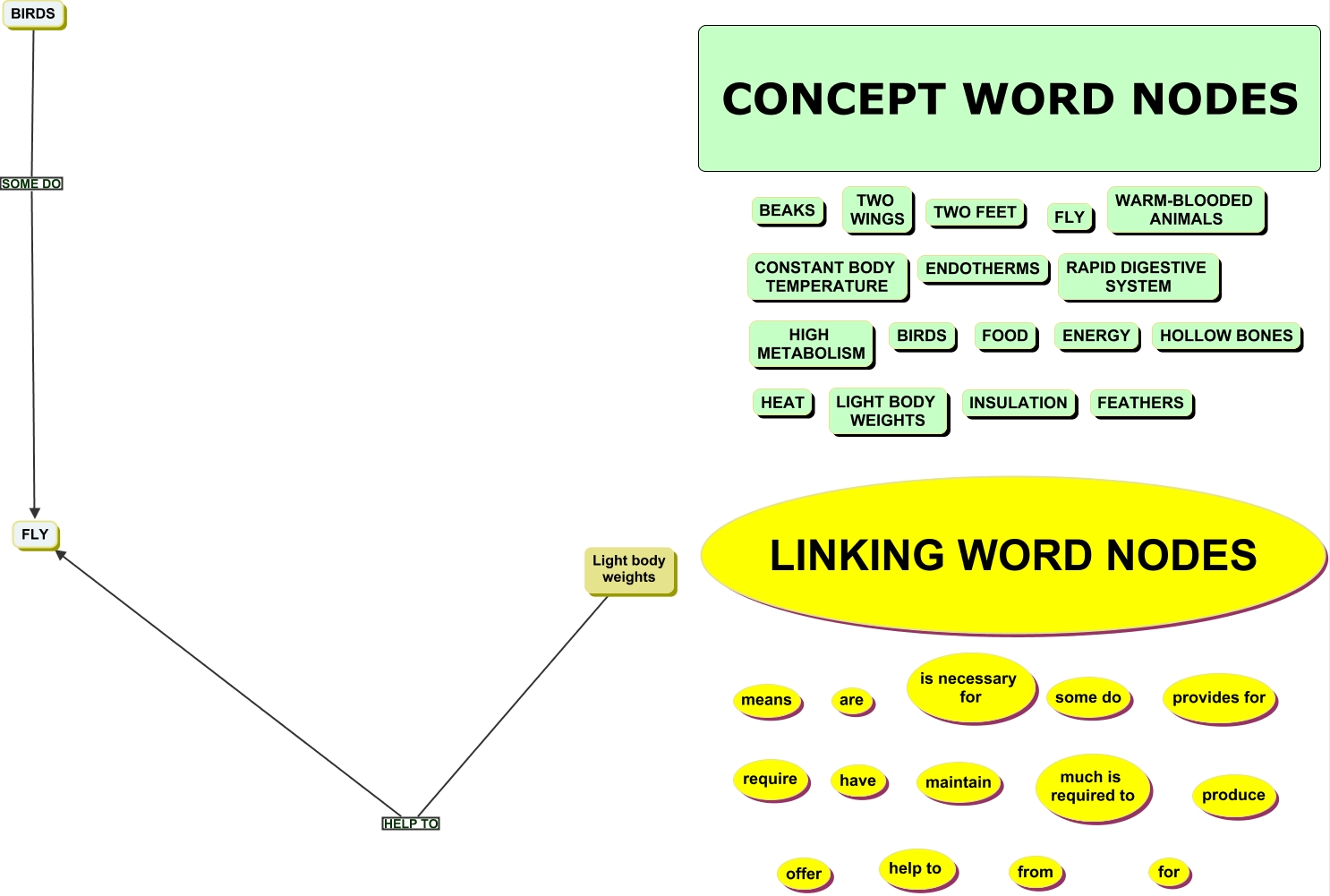 This Concept Map, created with IHMC CmapTools, has information related to: Birds Leg FIVE, Light body weights HELP TO FLY, BIRDS SOME DO FLY